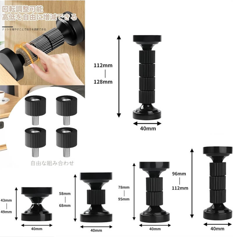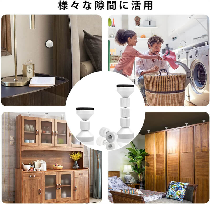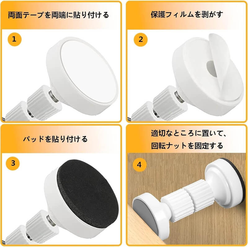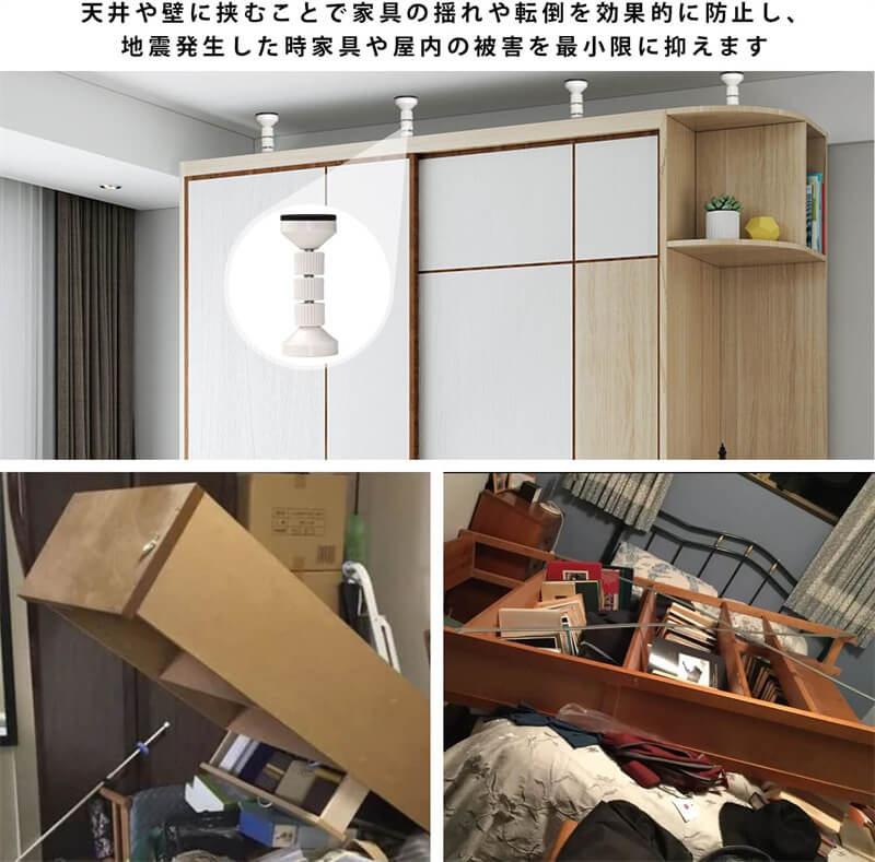2本セット 家具転倒防止 地震対策 突 ホワイト ブラック 43mm-49mm 58mm-68mm 78mm-95mm 96mm-112mm 112mm-128mm