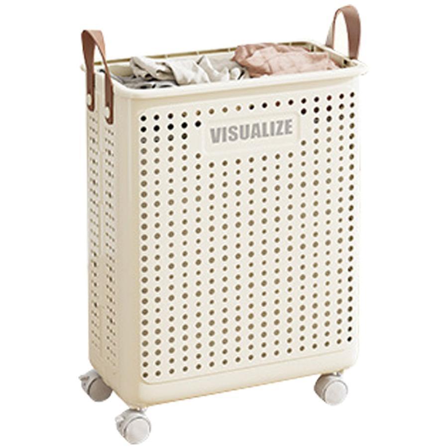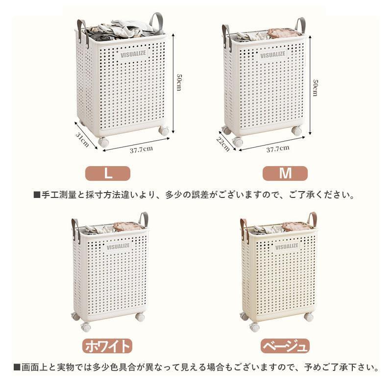 ランドリーバスケット キャスター付き ホワイト ベージュ M(45.4x22x37.7cm) L(45.4x31x37.7cm)