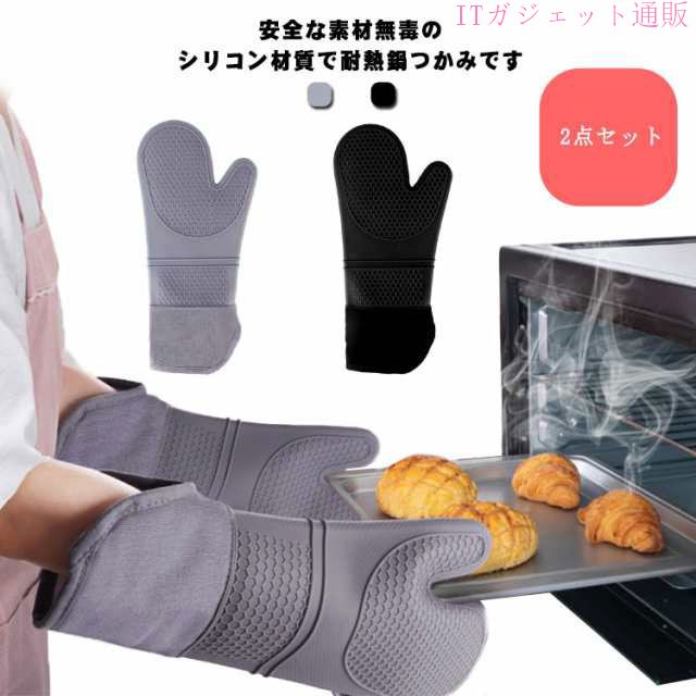 鍋つかみ ミトン シリコン 耐熱 2点 配膳用品 キッチンファブリック ミトン 鍋つかみ 早い者勝ち グレー ブラック