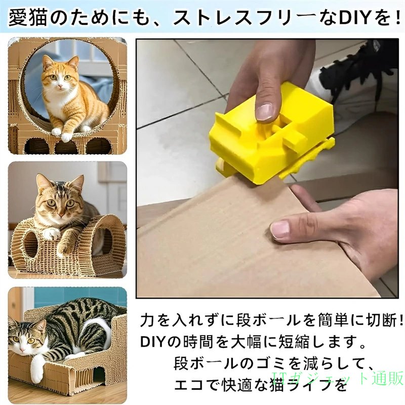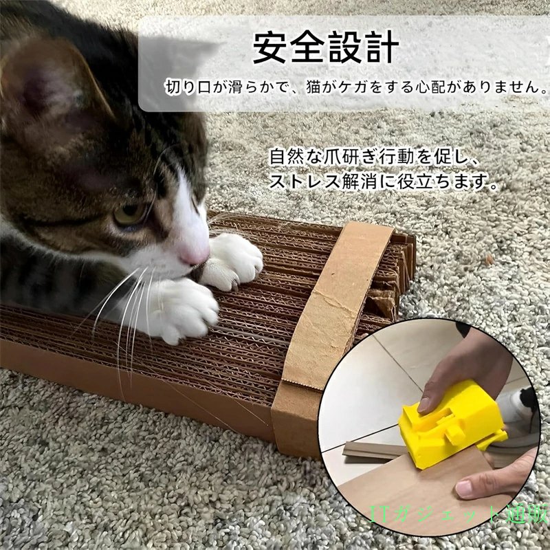 【DIY猫の爪研ぎ用段ボールカッター】この猫爪とぎ用段ボールカッターは、専用の刃が付属しており、廃段ボールを簡単にカットしてオリジナルの猫爪とぎや猫用家具を手作りできます。DIYが初めての方でも簡単に使え、愛猫と一緒に楽しみながら創造的な時間を過ごせます。猫タワーや猫ベッドなど、さまざまなアイテムを自由に作成可能!