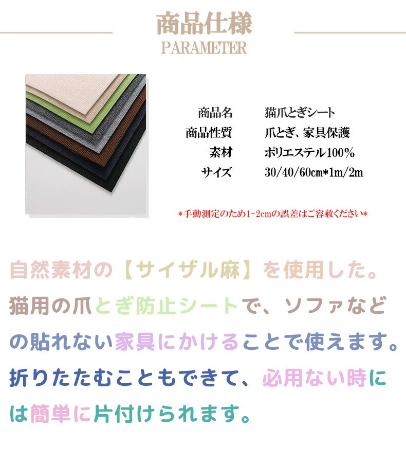 爪とぎ 壁 防止 シート 爪研ぎシート ペット ペットグッズ 豊富 薄グレー カーキ ブラック グレー ネイビー ブラウン ベージュ 1枚 2枚