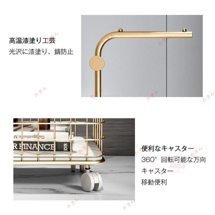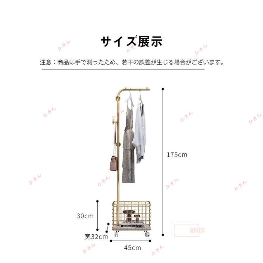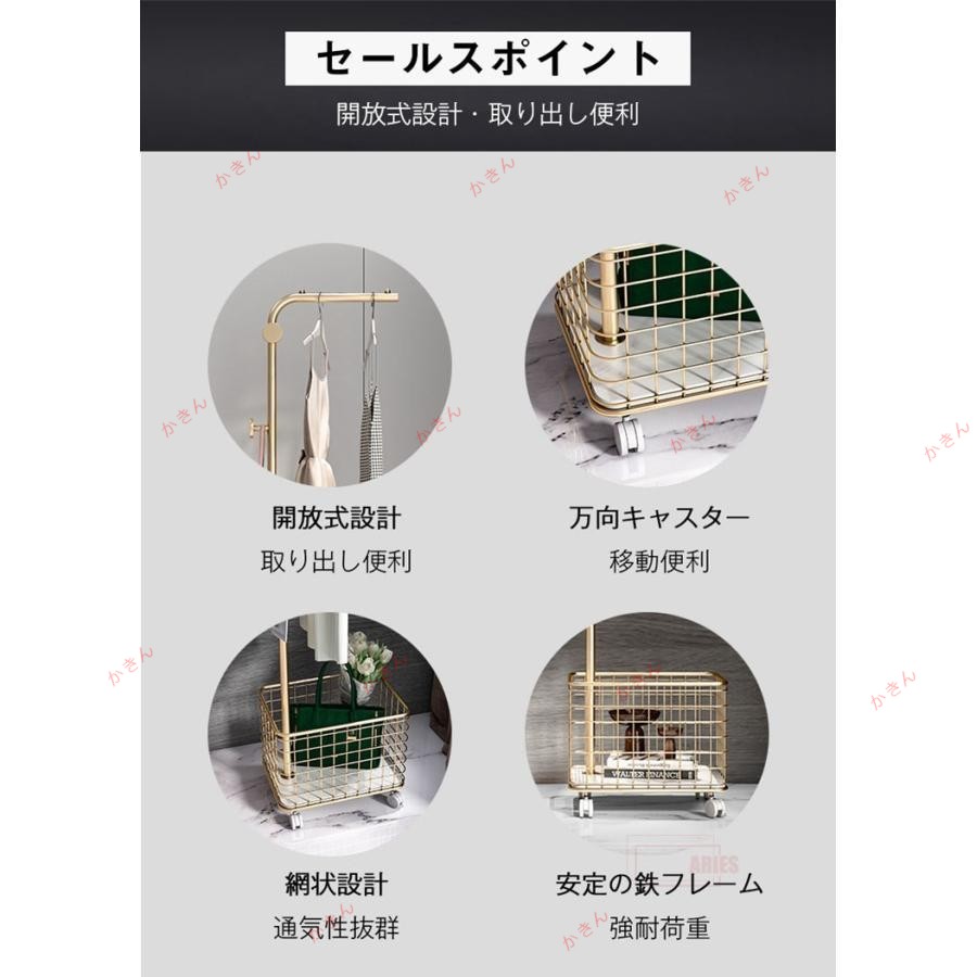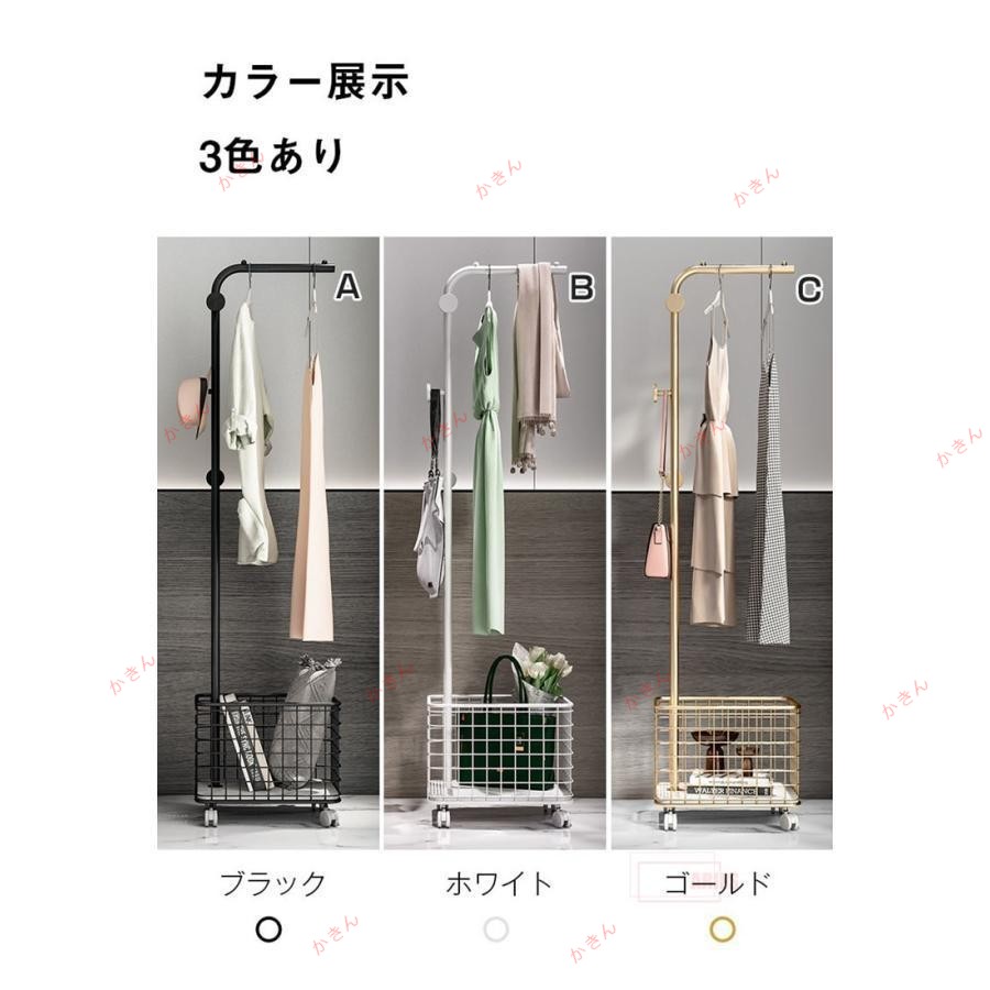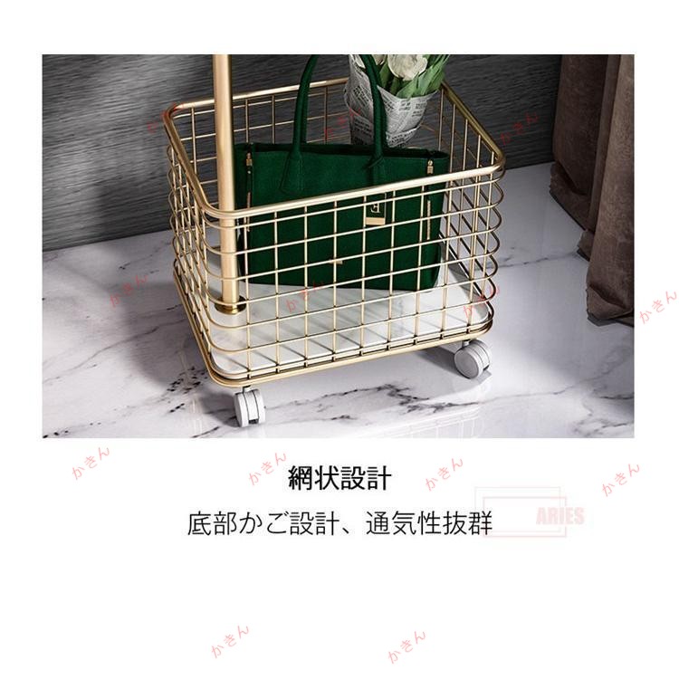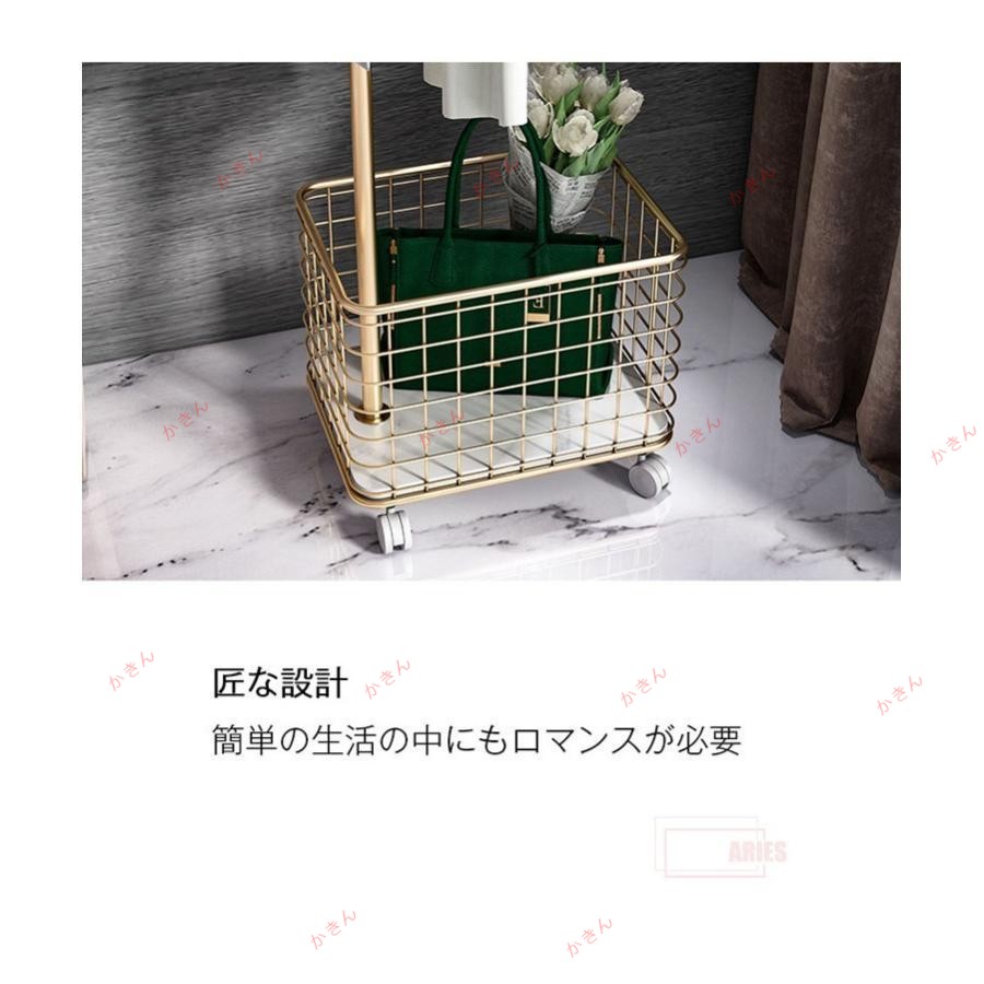 ハンガーラック キャスター付き かご ブラック ホワイト ゴールド