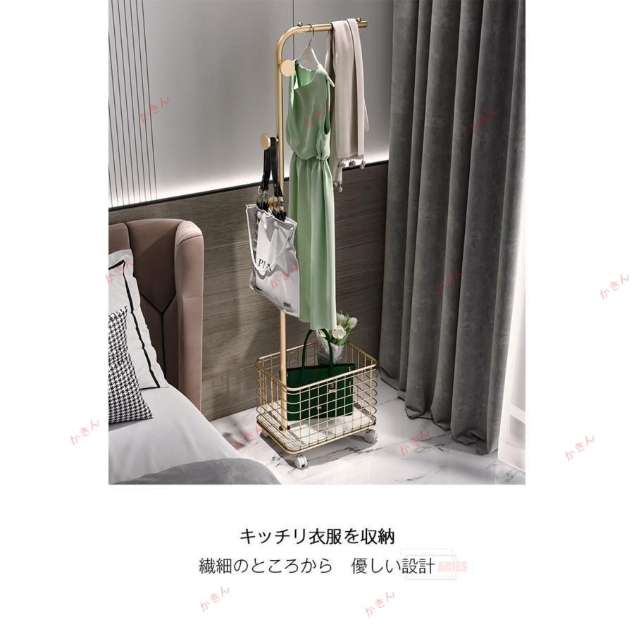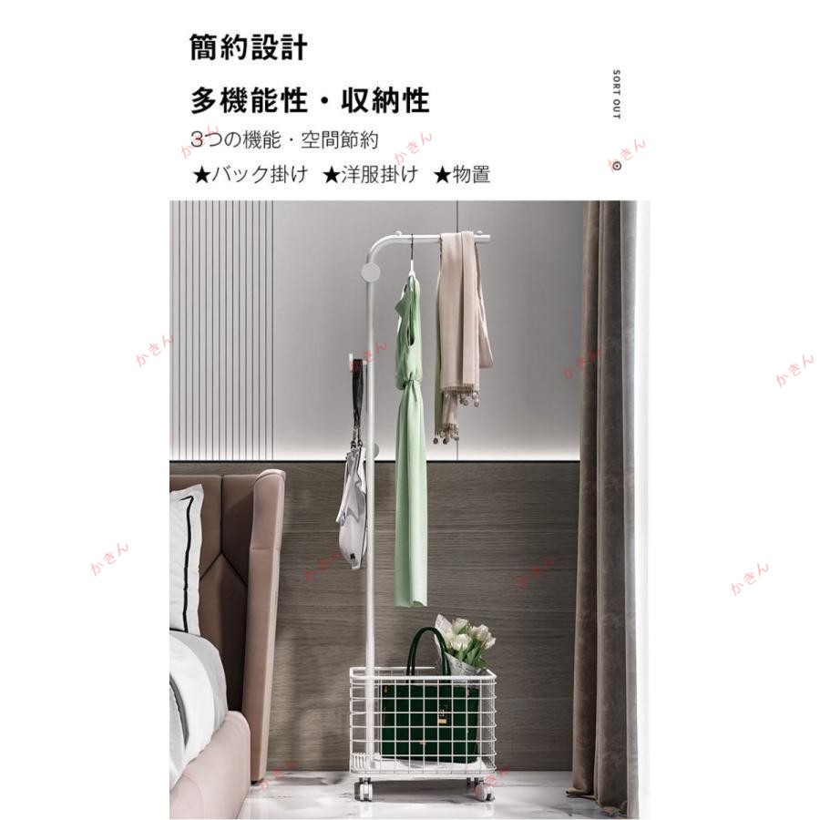 ハンガーラック キャスター付き かご コートハンガー スリム 衣類収納 洋服掛け コンパクト おしゃれ モダン 鞄掛け バック掛け 北欧