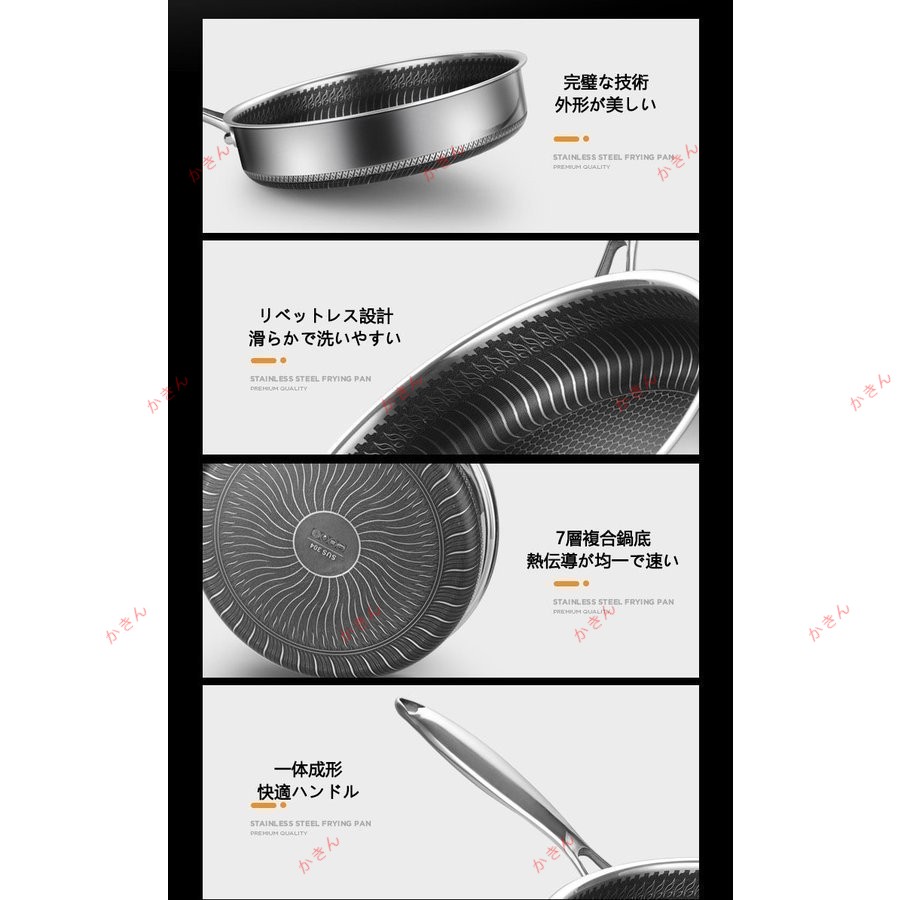 焦げ付き防止304ステンレス鋼フライパ