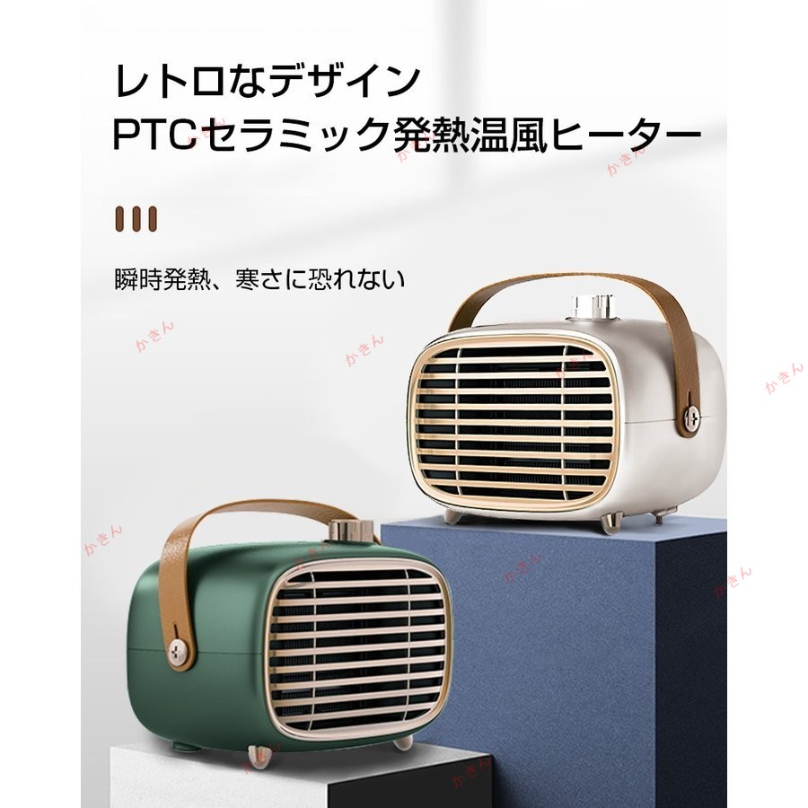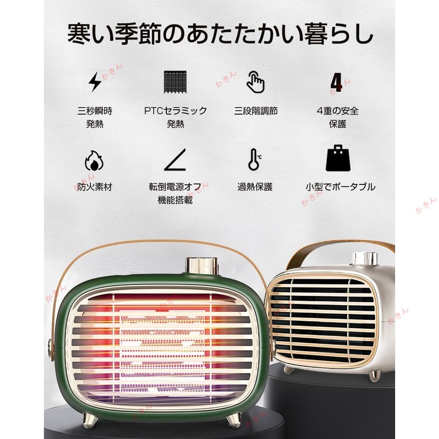 ポータブル温風ヒーター 電気ファンヒー ホワイト グリーン
