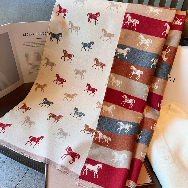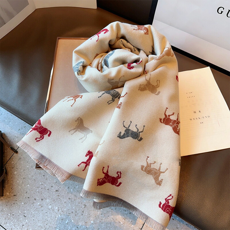 イギリス風 ストール ホース柄 マフラー スカーフ 大判 馬柄 ショール レディース ブランケット ひざ掛け 膝掛け 防寒 寒さ対策 暖かい かわいい クリスマス 母の日 プレゼン おしゃれ