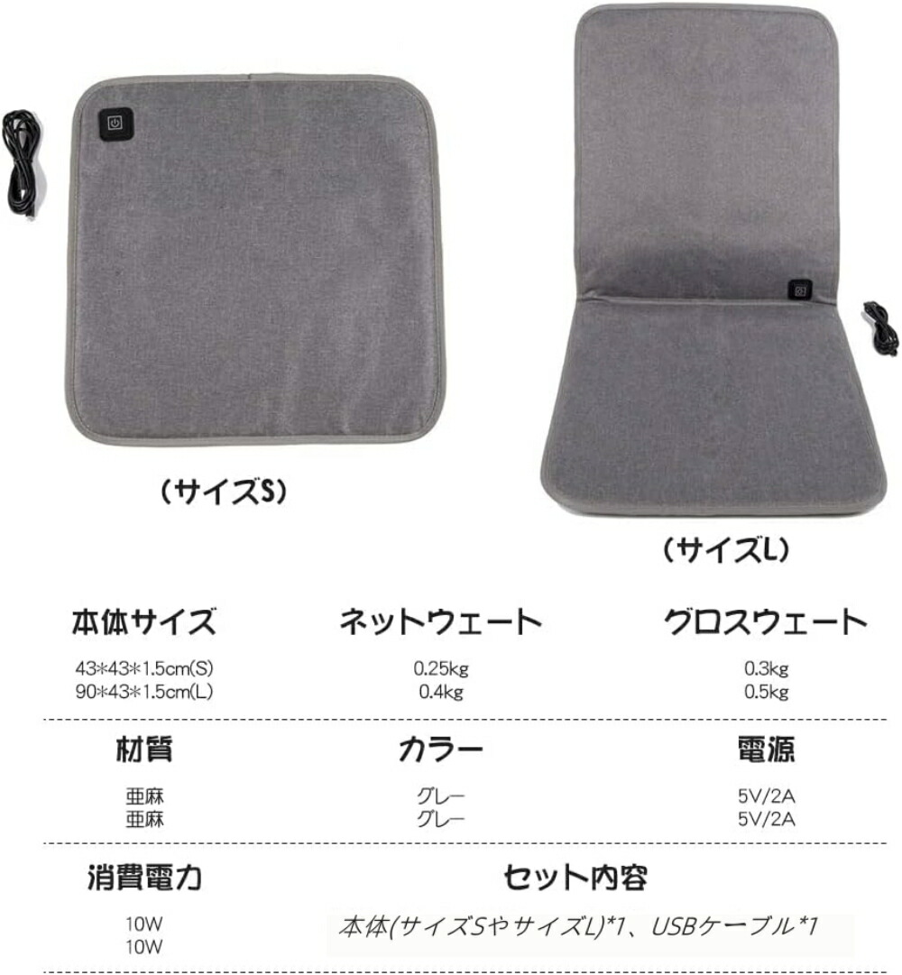 ホットクッション 電気座布団 あったか グレー ブラック 43*43 43*90