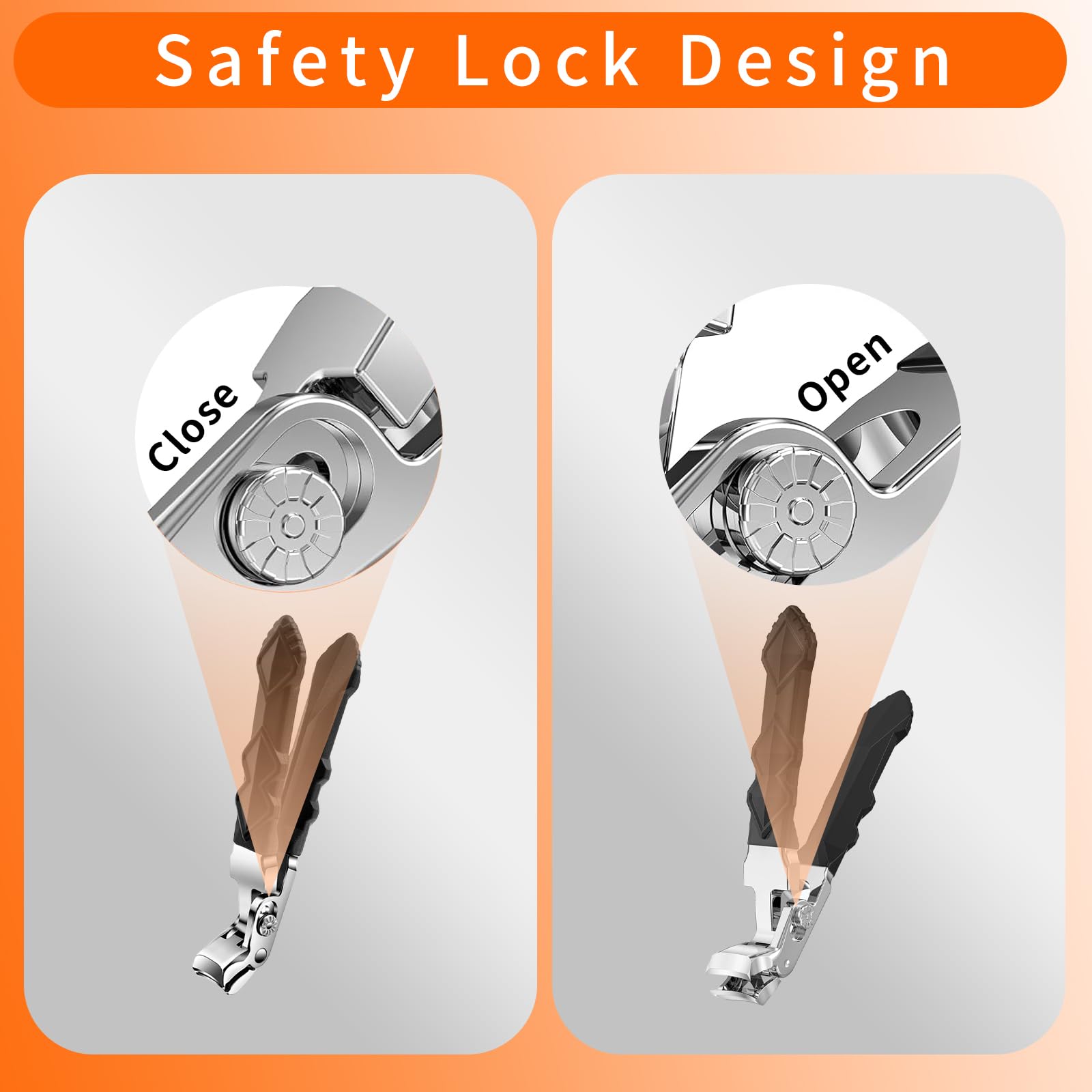 【安全ロックデザイン】厚い爪切りには安全ロックが内蔵されており、使用しないときはスライドロックを安全な位置に押すだけで、安全な体験ができます。 また、収納に便利なオーガナイザーボックスもご用意しています。