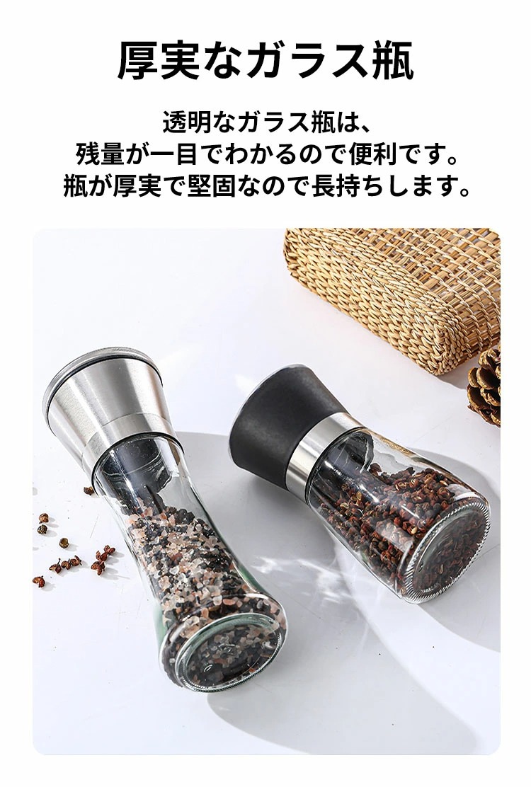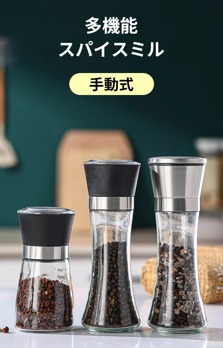 ペッパーミル スパイスミル 手動式 ご 調理 製菓道具 調理器具 ミル ペッパーミル 通販 180ml ステンレス蓋 1個 200ml ステンレス蓋 1個 180ml プラスチック蓋 2個 180ml ステンレス蓋 2個 200ml プラスチック蓋 2個 200ml ステンレス蓋 2個