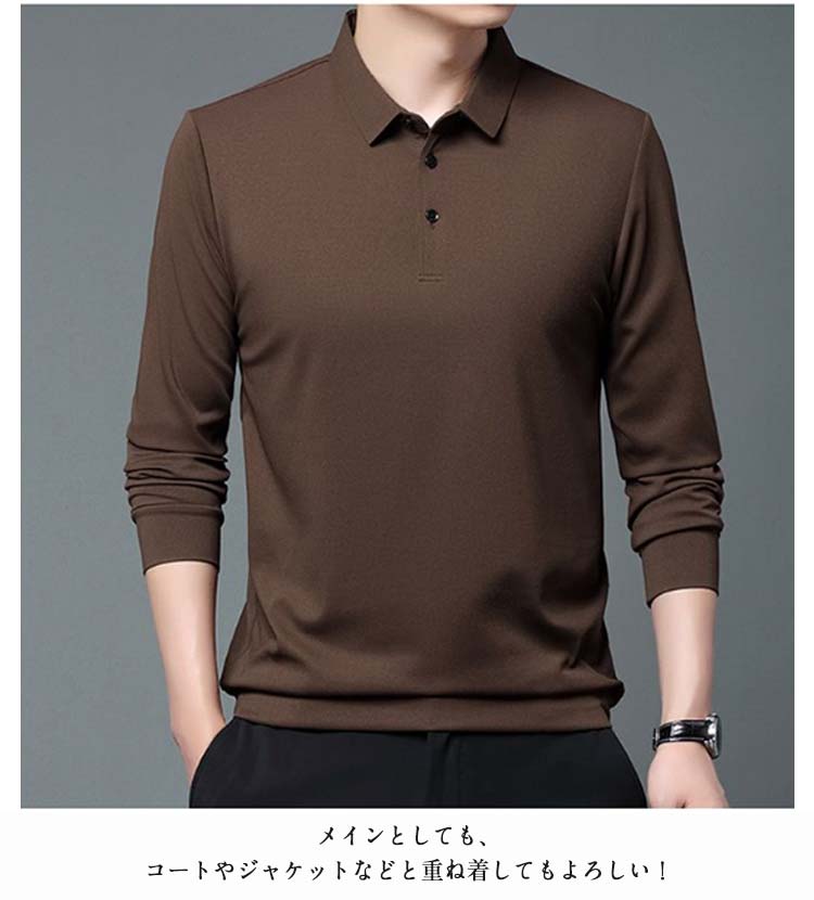 ポロシャツ 長袖 シンプル メンズ 裏 メンズファッション 特集 ベージュ ダークブルー ダークグリーン コーヒー ブラック レッド ネイビー グリーン M L XL 2XL 3XL 4XL