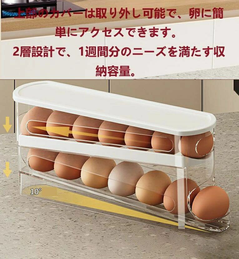 卵収納ボックス 自動ローリング 2段エ キッチン用品 食器 調理器具 新作 透明1個入 透明2個入