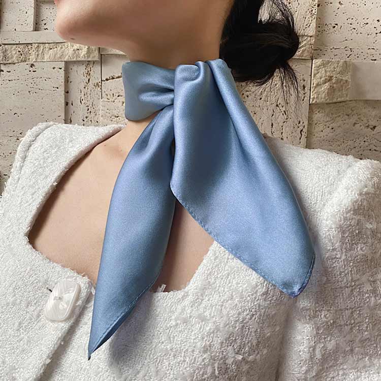 髪の包 頭飾り オフィス ネックカバー スカーフ 制服 首元隠し UVカット ストール ネッカチーフ 53×53cm 無地 シルク
