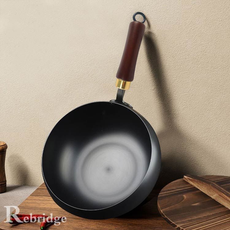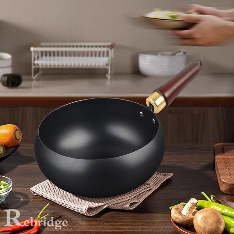 【優れた耐久性】絶妙な鉄素材は、耐摩耗性に優れているだけでなく、調理にも耐え、耐用年数が長い。丸い構造設計は効果的に熱を伝達し、調理効率を高めることができる。木製のハンドルの抗焦げ設計により 安全で便利な調理体験をもたらします。