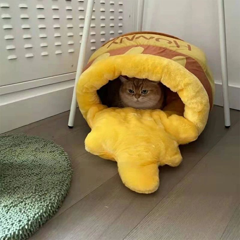 猫ベッド こぼれハチミツ壺型 ねこ ハ 猫用品 ベッド マット 寝具 ベッド 特集