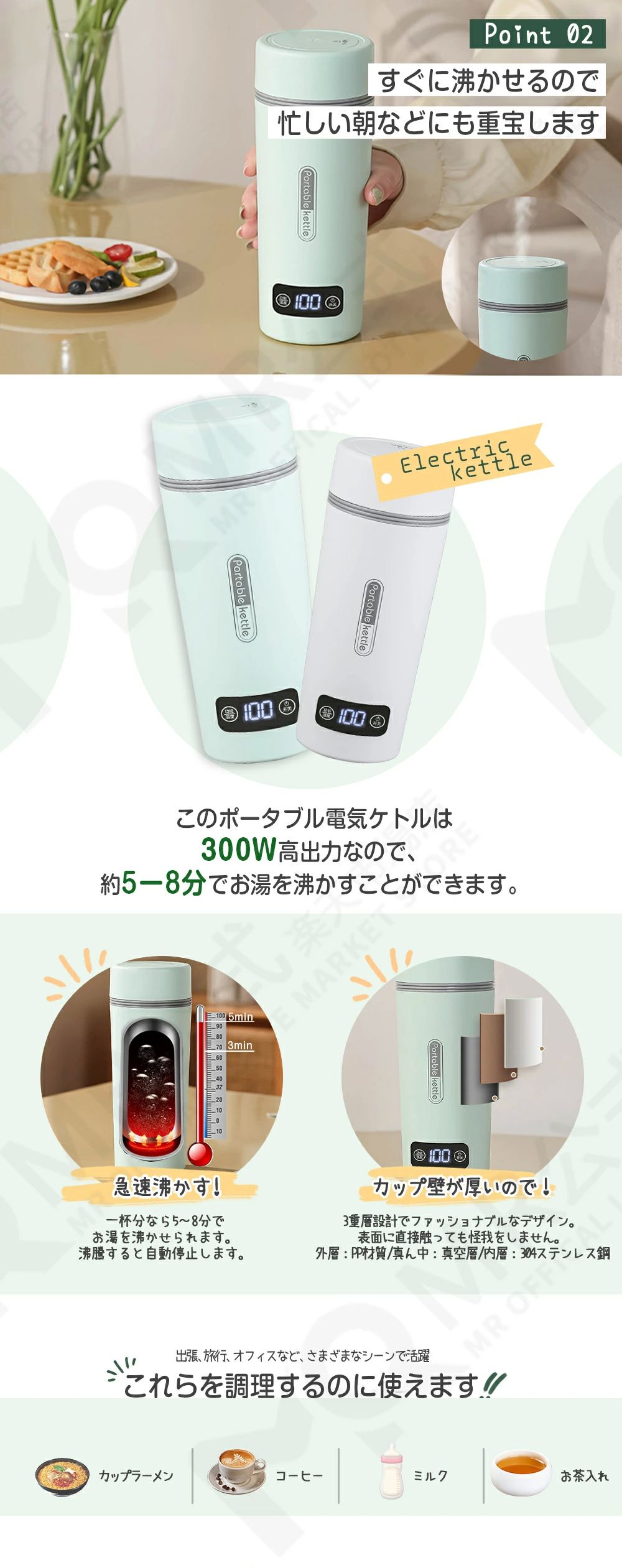 ミルク 赤ちゃん 電気ボトル 5分間沸 ホワイト グリーン ブラック パープル 申し込みます 申し込みません