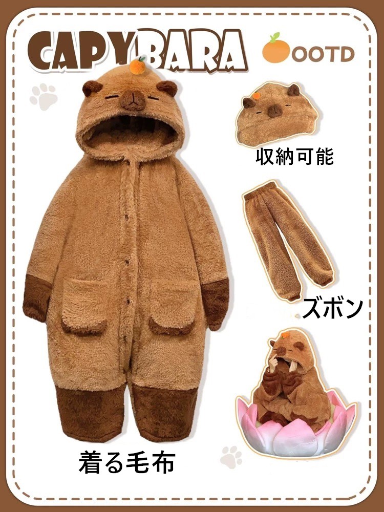 5種類 カピバラ柄 着る毛布 着ぐるみ レディース ナイトウェア ルームウェア ルームウェア トップス 早い者勝ち 着る毛布 着る毛布+ズボン S M L XL
