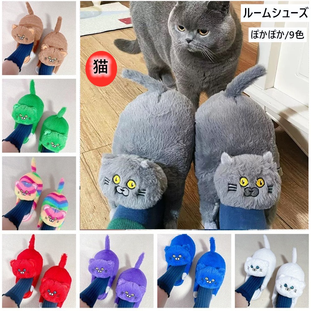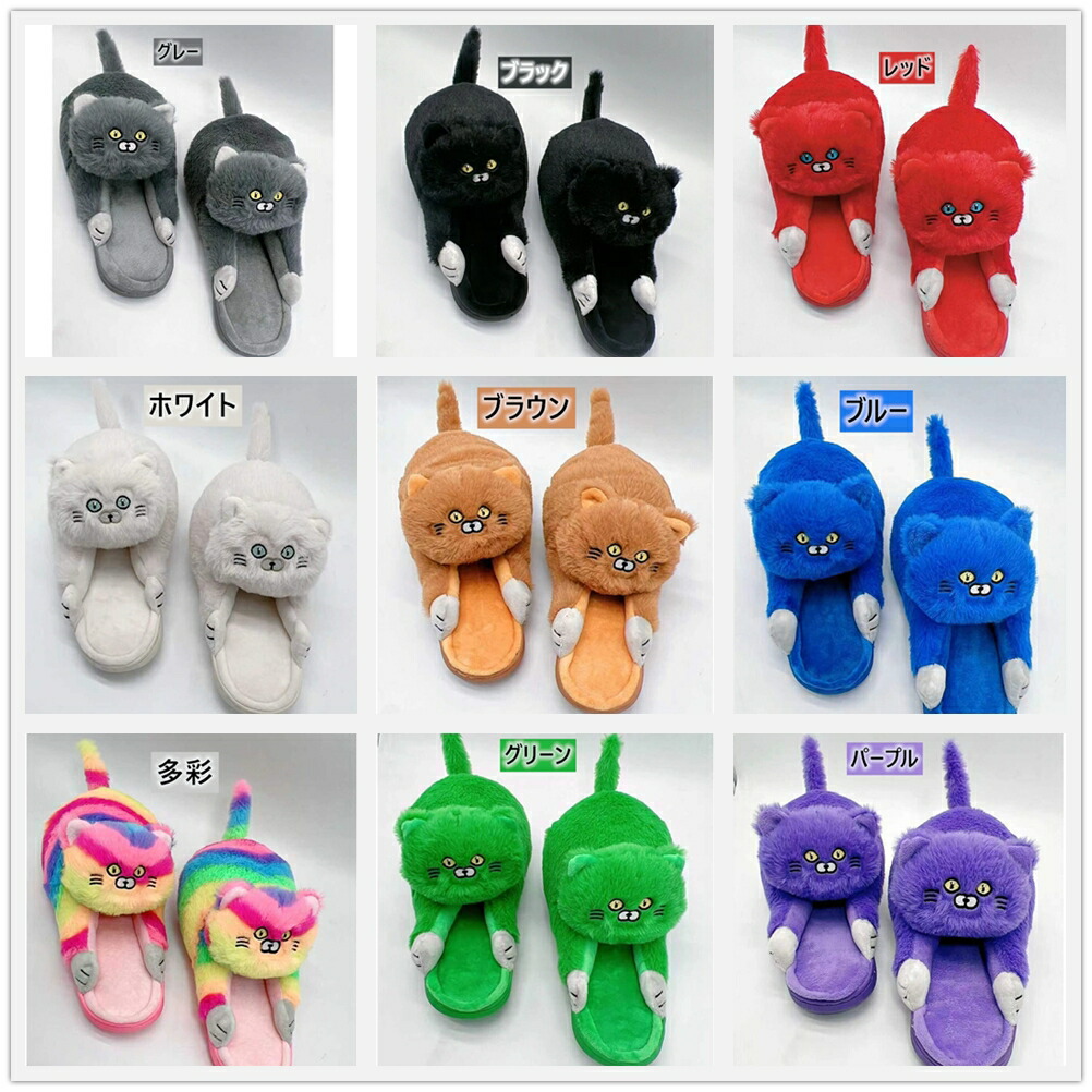 猫デザイン スリッパ レディース もこ 日用品雑貨 文房具 手芸 超目玉商品 グレー ブラック レッド ホワイト ブラウン ブルー 多彩 グリーン パープル