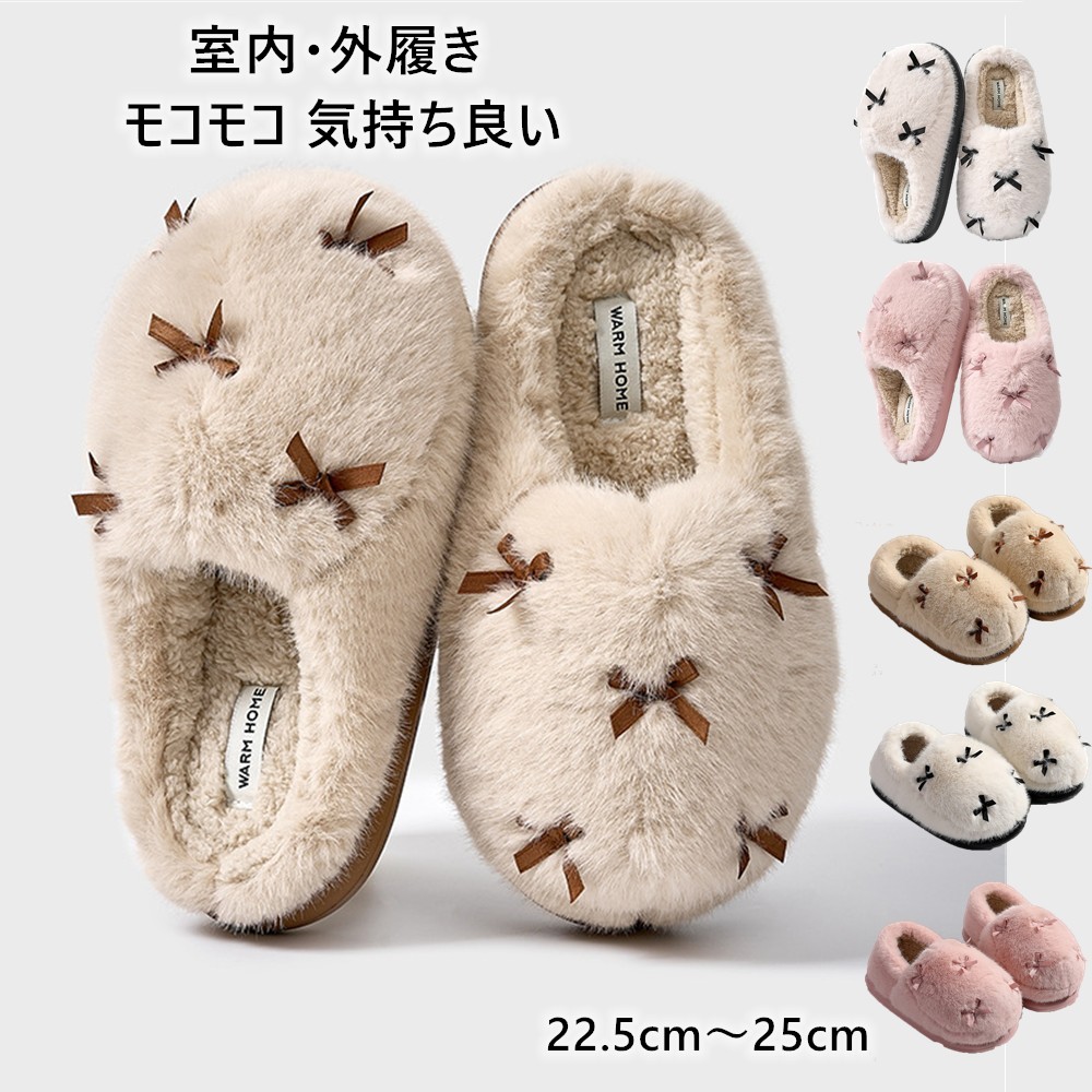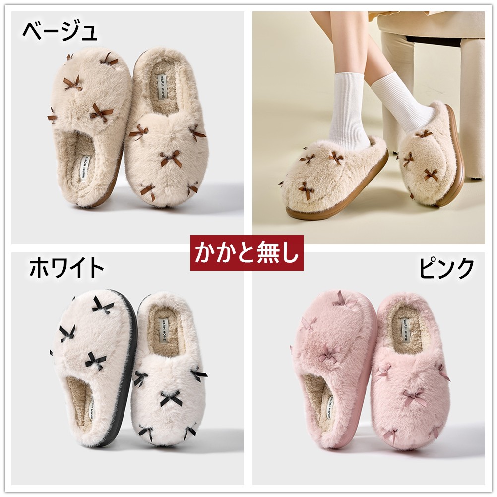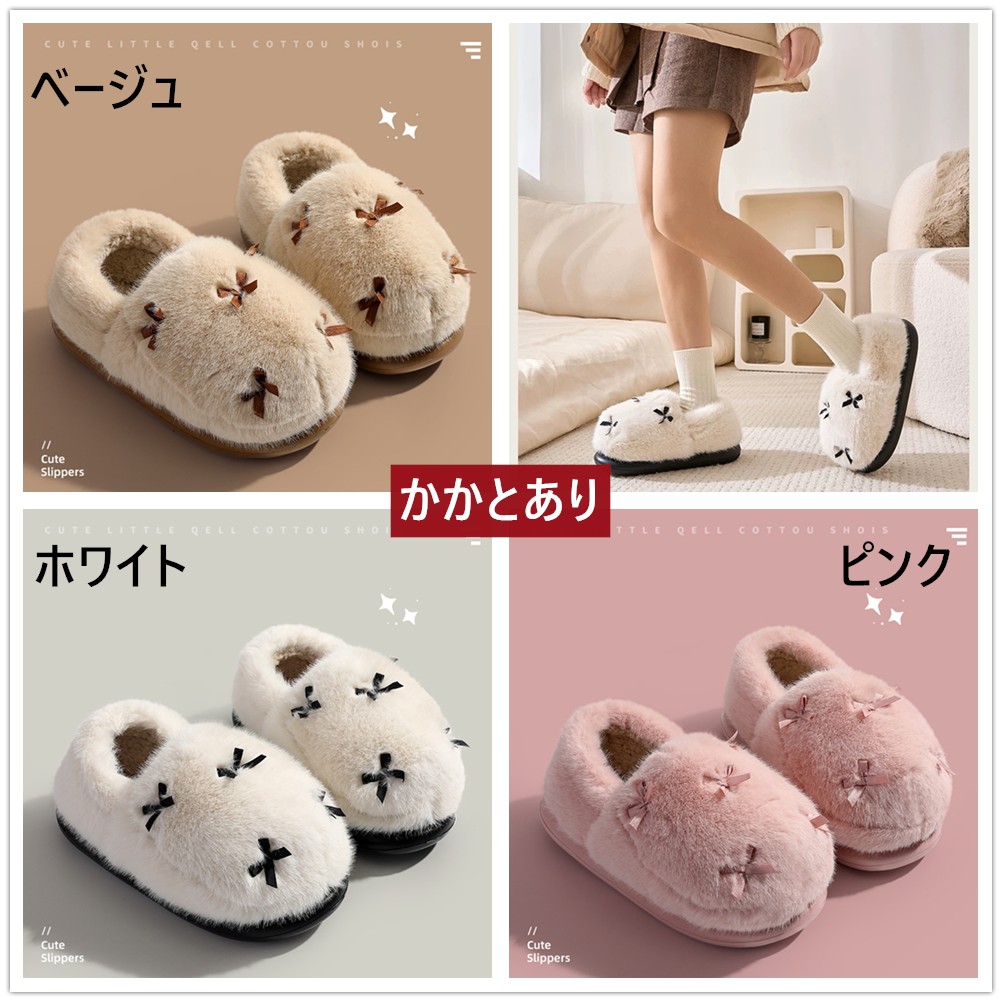 スリッパ かわいいリボン装飾 もこもこ 生活雑貨 スリッパ ルームシューズ ルームシューズ 超目玉商品 ベージュ ホワイト ピンク 36-37(内寸22.5-23cm適応) 38-39(内寸23.5-24cm適応) 40-41(内寸24.5-25cm適応)