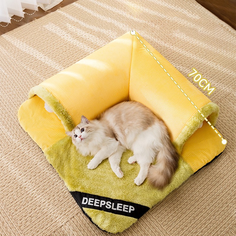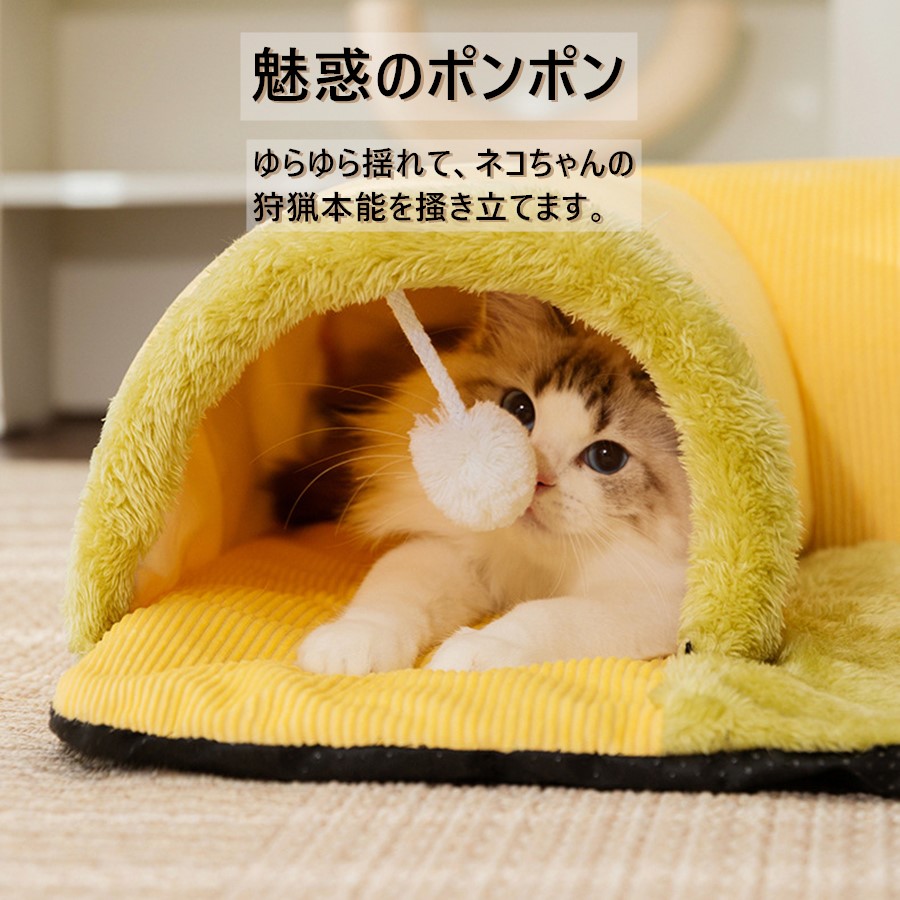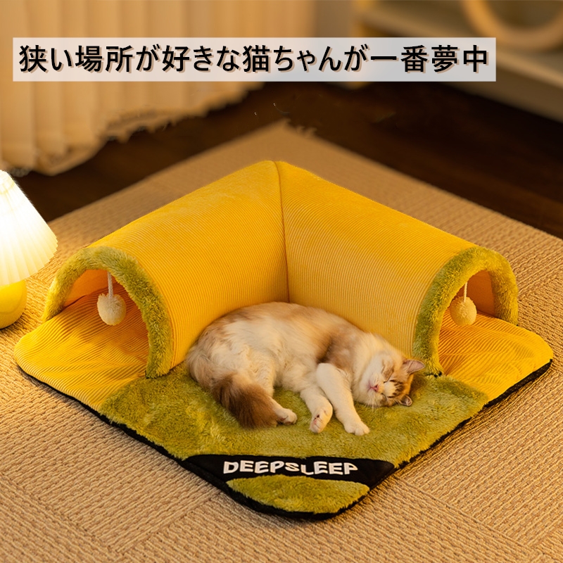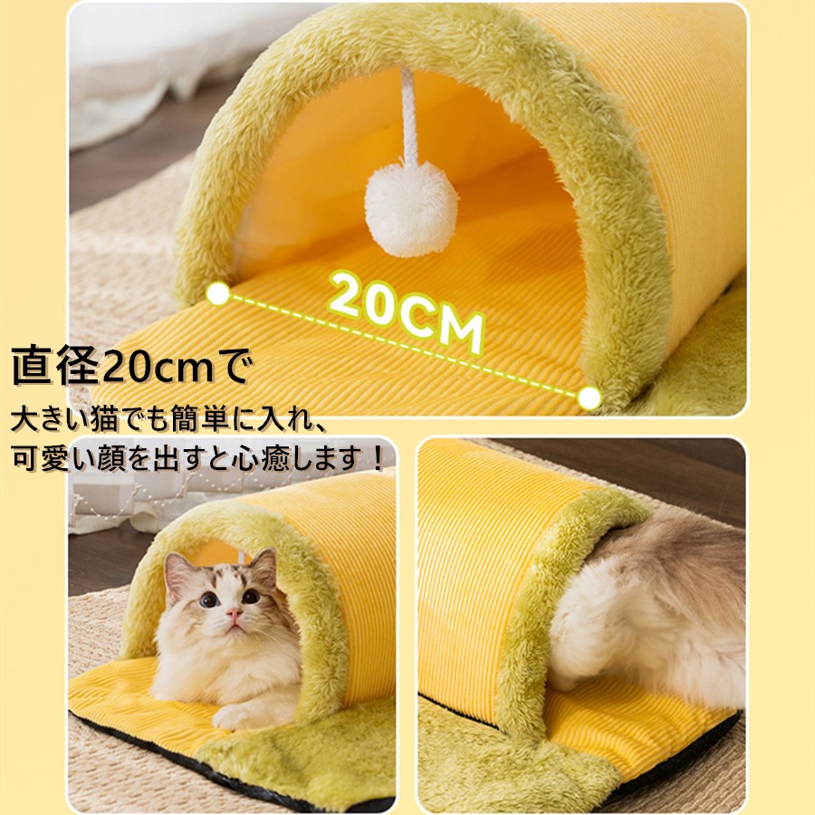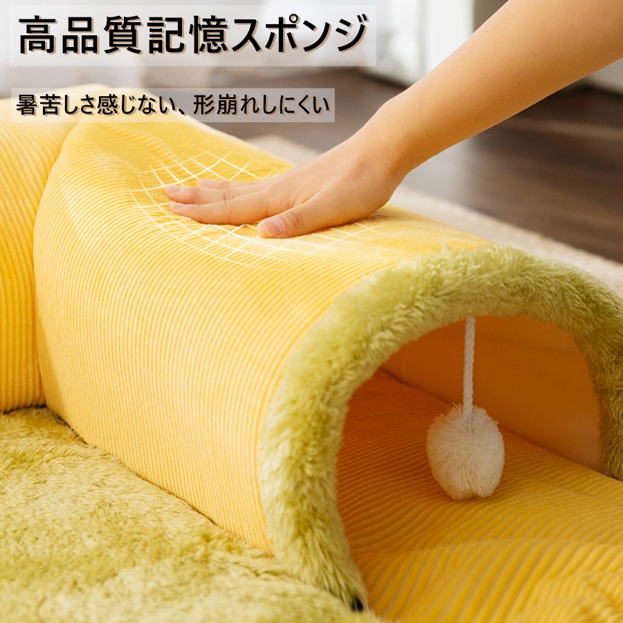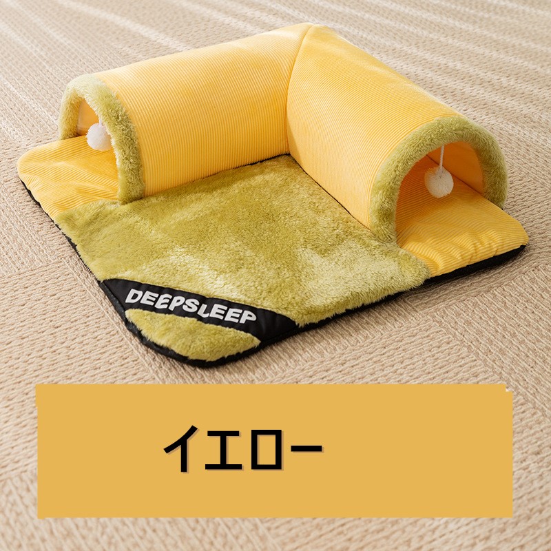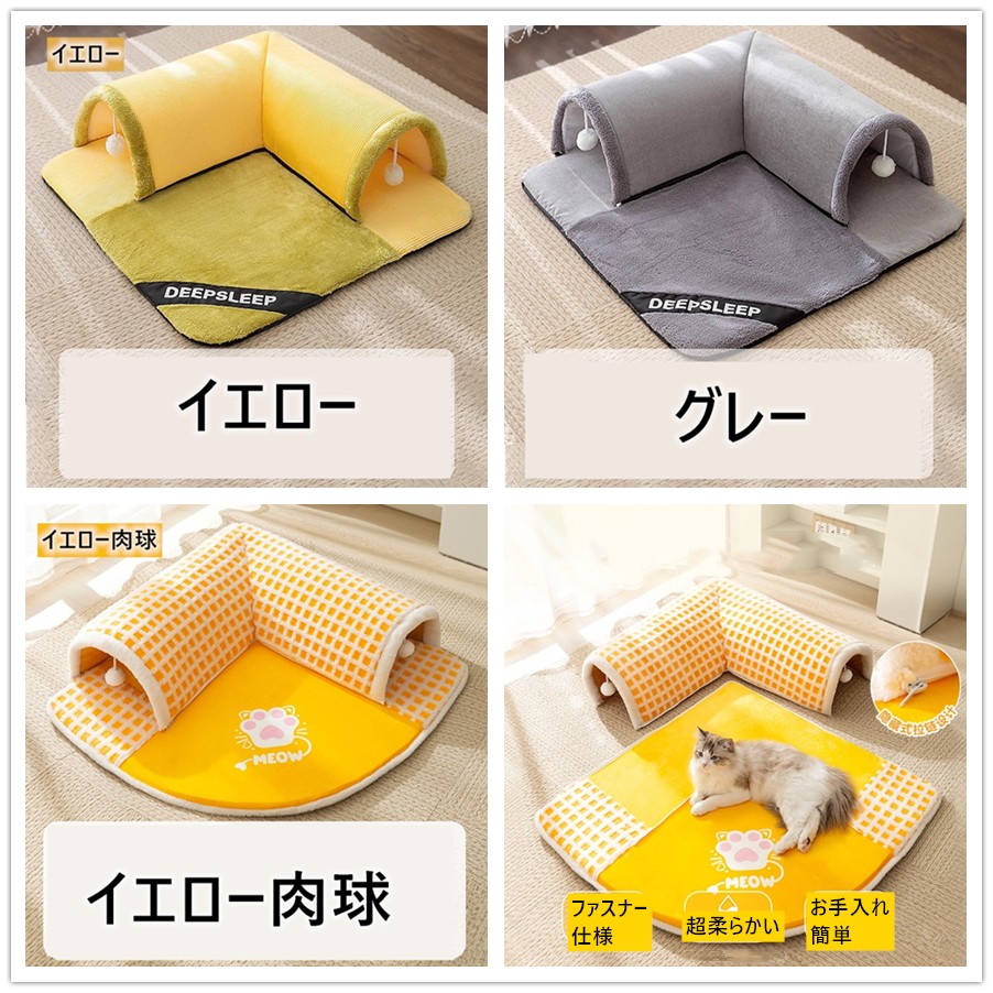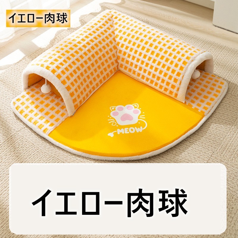 ねこトンネル ペットベッド 冬 猫 ベ 猫用品 ベッド マット 寝具 クッション 新作 イエロー グレー イエロー肉球 S(50*50cm) M(60*60cm) L(70*70cm) XL(80*80cm)