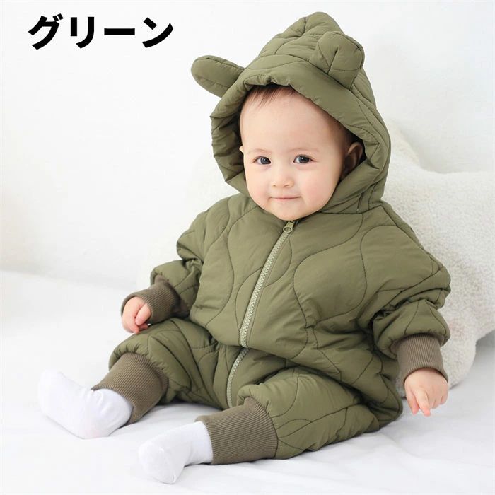 ロンパース 長袖 ジャンプスーツ ベビ キッズ ベビー マタニティ 人気 グリーン ブラウン ホワイト カーキ 66cm 73cm 80cm 90cm
