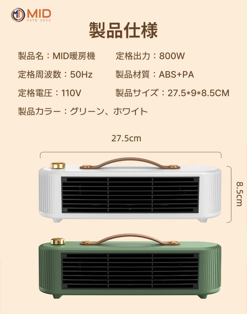 セラミックヒーター 小型 おしゃれ ヒ ホワイト グリーン 日本限定色