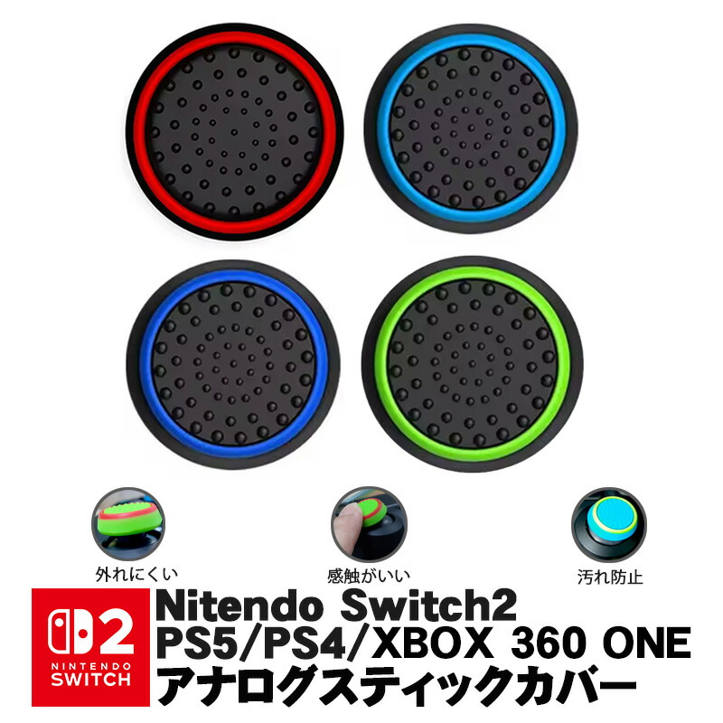 Switch2 PS5 PS4 XBOX ONE 360対応 スティックカバー プレイステーション Switch Proコントローラー コントローラ専用 サークル ブルー レッド ライトグリーン 黒地