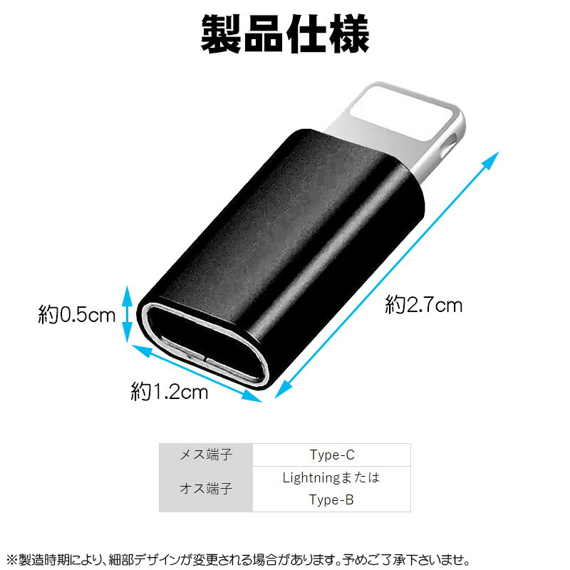・TypeC端子をLightning端子またはType-B(MicroUSB)端子に変換するアダプターです。