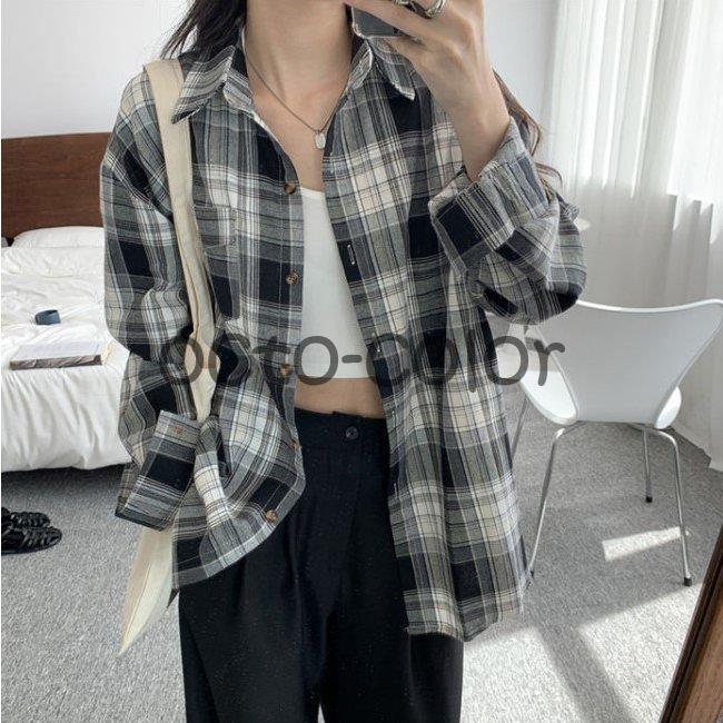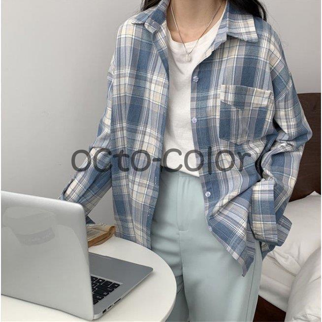 レディース シャツ チェックシャツ シ レディースファッション 人気 ブルー ブラック S M L XL