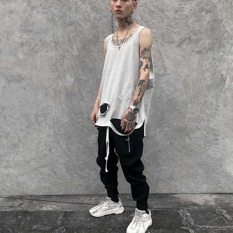 ストリート系 カットソー ロングtシャ トップス タンクトップ 続々入荷中 ホワイト ブラック グレー M L XL 2XL