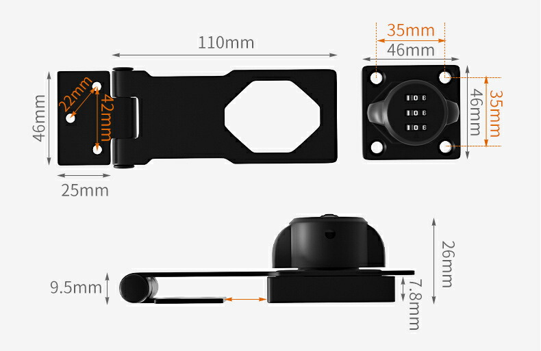 引き戸 鍵 後付け 穴あけ不要 補助鍵玄関 3桁ダイヤル式 落とし防止 引き出し 鍵キャビネット ロッカー 部屋