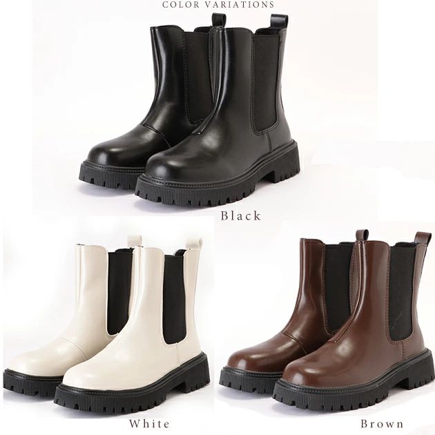 フェイクレザー サイドゴア ショートブ 靴 新作 ブラック ブラウン ホワイト 35【22.5cm】 36【23.0cm】 37【23.5cm】 38【24.0cm】 39【24.5cm】 40【25.0cm】