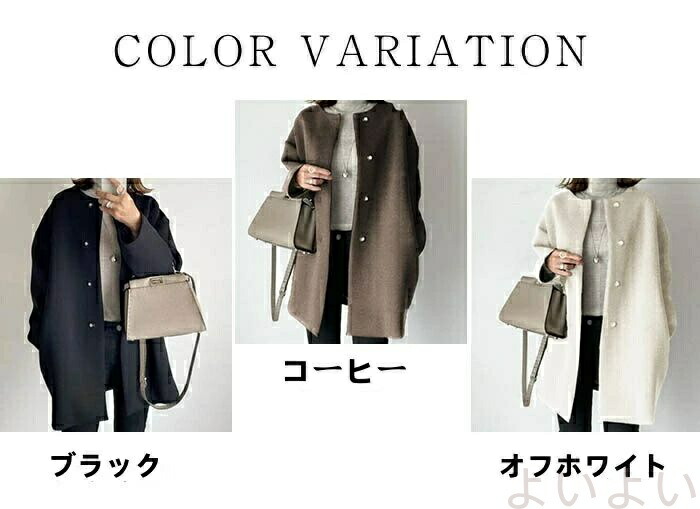 ノーカラー コート レディース 秋冬 レディースファッション 豊富な品揃え オフホワイト コーヒー ブラック S M L XL 2XL