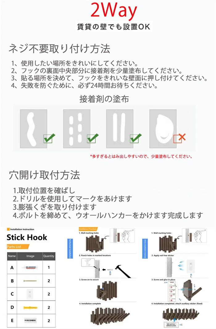 帽子掛 木製 木 壁掛 洋服掛 壁粘着 ブラウン ベージュ 3連 5連 7連 9連