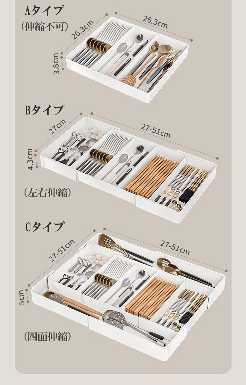 大好評商品 カトラリー収納 カトラリー キッチン整理用品 整理ボックス 早い者勝ち TypeA(伸縮不可) TypeB(左右伸縮) TypeC(四面伸縮)
