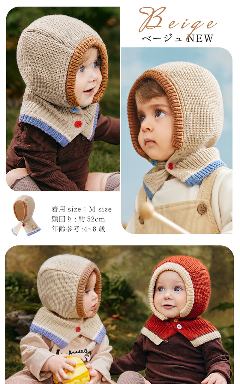 子供 バラクラバ フードウォーマー 寒 マフラー スカーフ ネックウォーマー スヌード 新登場! レッド ブルー ベージュ ブラウン レッドNEW ピンクNEW グリーンNEW ベージュNEW S(約48cm) M(約52cm)