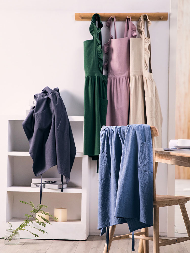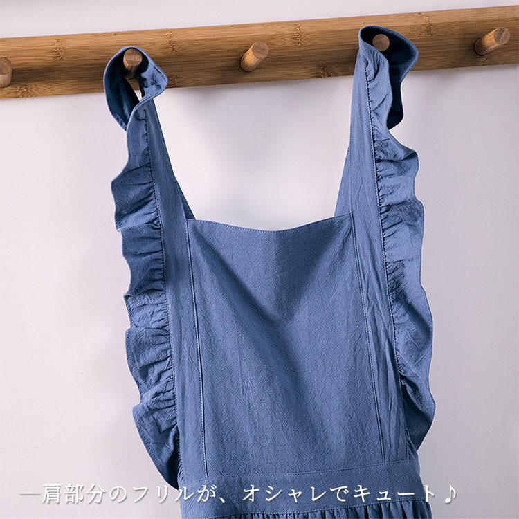 エプロン 大人可愛い 肩フリル おしゃ キッチン用品 食器 調理器具 超目玉商品 ベージュ ピンク グレー グリーン ブルー