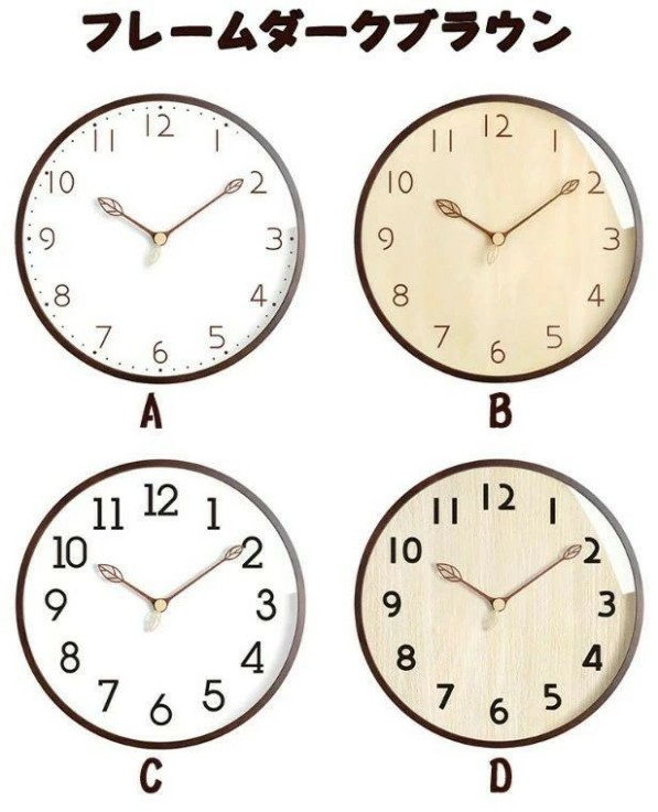壁掛け時計 葉っぱデザイン針 30cm フレームライトブラウンA フレームライトブラウンB フレームライトブラウンC フレームライトブラウンD フレームダークブラウンA フレームダークブラウンB フレームダークブラウンC フレームダークブラウンD
