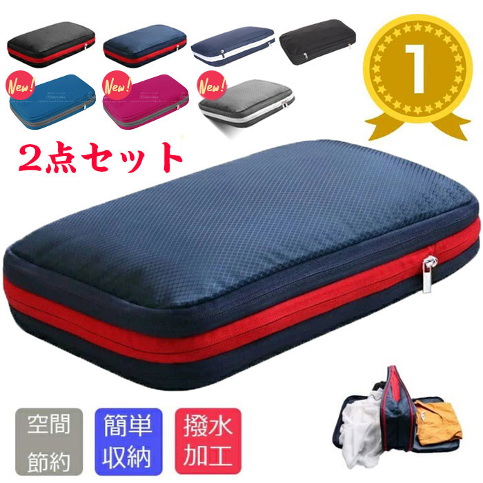 2個セット 旅行用圧縮袋 トラベルポー 旅行用品 トラベルポーチ パッキングオーガナイザー 人気 ネイビー(2枚) ブラック(2枚) ネイビー(1枚)+ブラック(1枚) フルブラック(2枚) ブルー(2枚) ピンク(2枚) グレー(2枚)