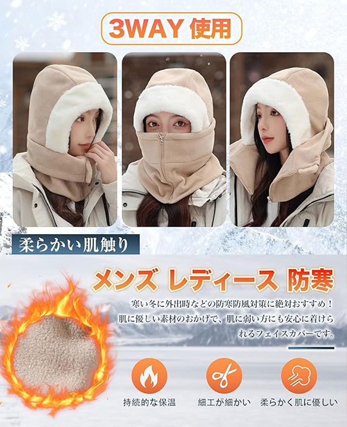 帽子 冬 ネックウォーマー フェイスカ ブラック ライトグレー ダークグレー カーキ ベージュ