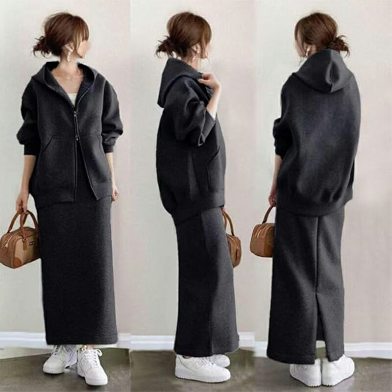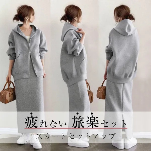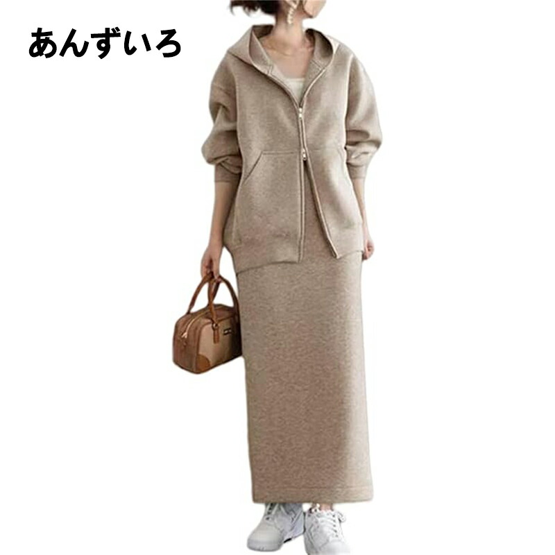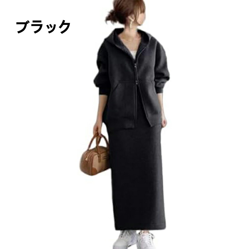 セットアップ ジップアップパーカー ス レディースファッション 通販 グレー ブラック あんずいろ S M L
