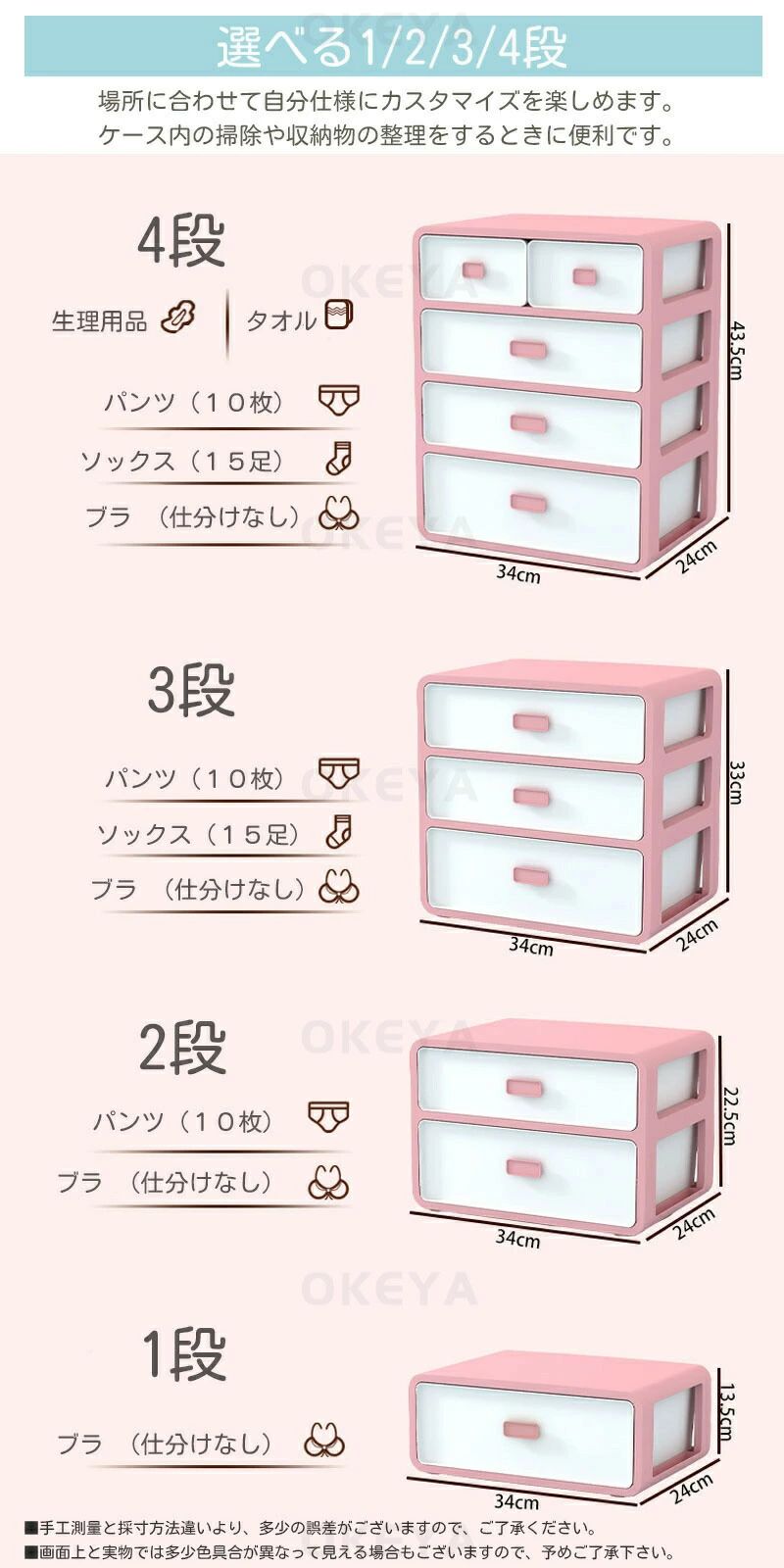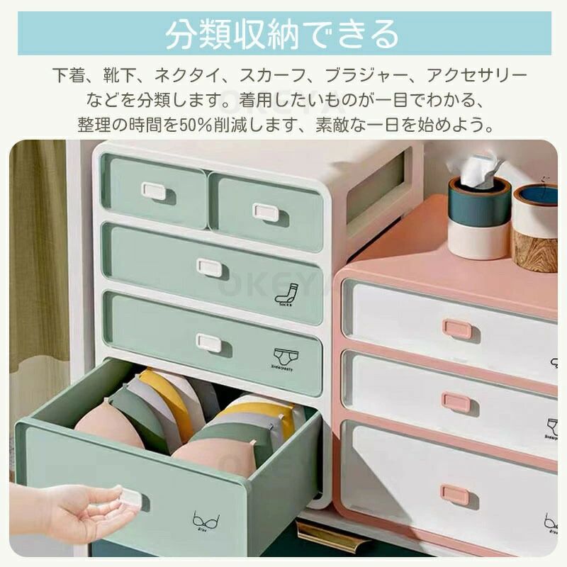 下着 収納 ブラジャー 引き出し 下着 ベージュ ピンク ミントグリーン ブラック 2段 3段 4段