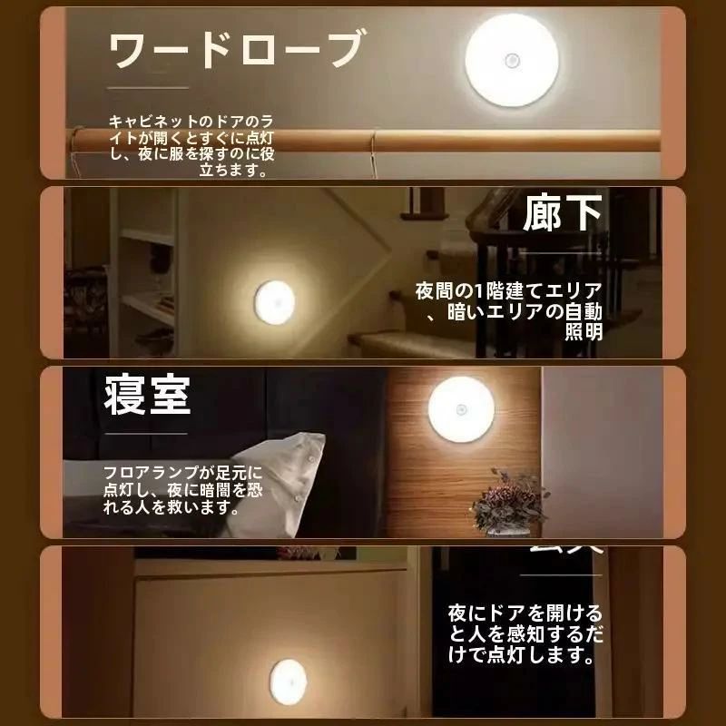 人体感知 自動点灯 小夜灯 ベッドサイ 暖光1個セット 暖光10個セット