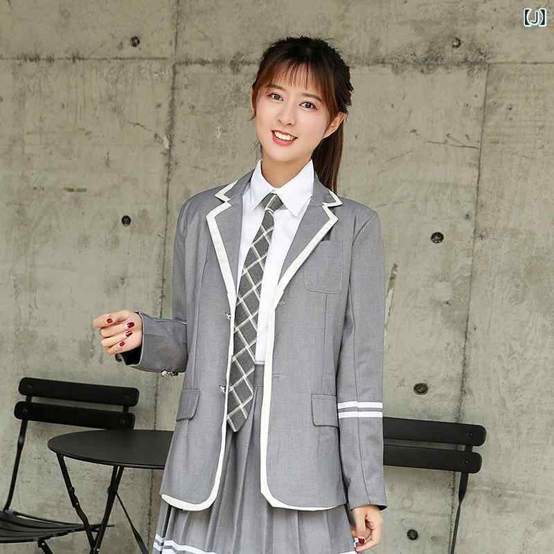 セットアップ スクールウェア レディー メンズファッション 特集 A:白半袖+グレー短スカート B:白半袖+グレー中スカート C:白半袖+グレー長ズボン D:白長袖+グレー短スカート E:白長袖+グレー中スカート F:白長袖+グレー長ズボン G:白長袖+短スカート3点 H:白長袖+中スカート3点 I:白長袖+長ズボン3点 J:グレー上着 K:白半袖+灰ネクタイ L:白長袖+灰ネクタイ M:男白半袖+灰ネクタイ N:男白長袖+灰ネクタイ XS S M L XL XXL XXXL 4XL