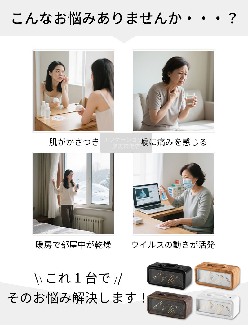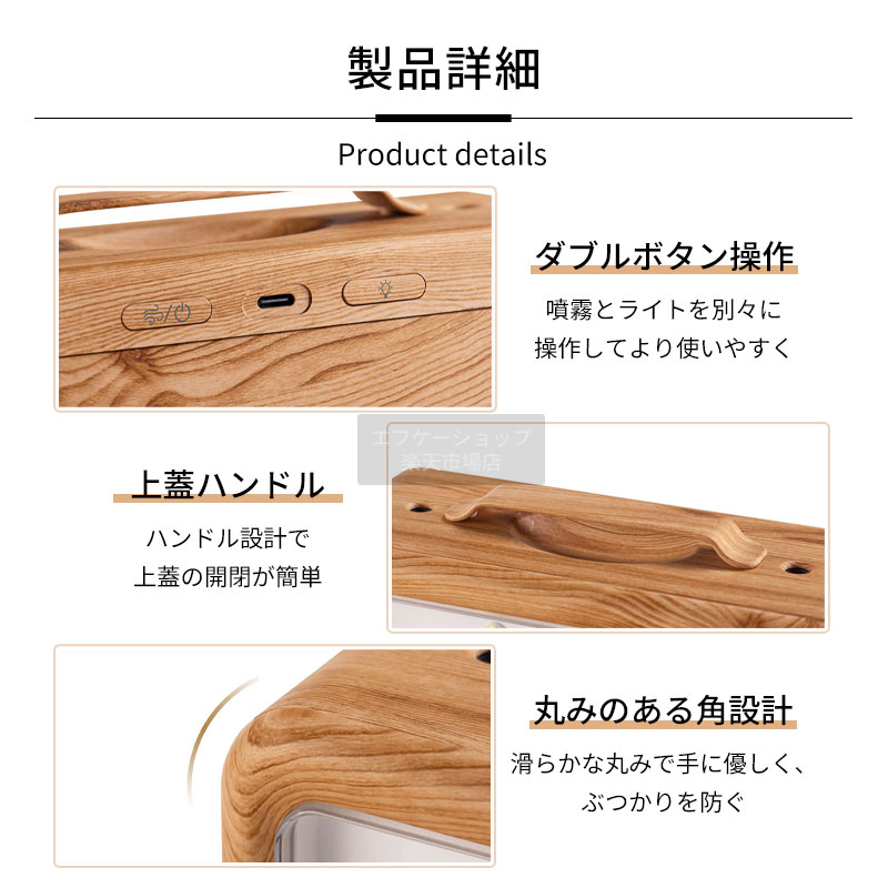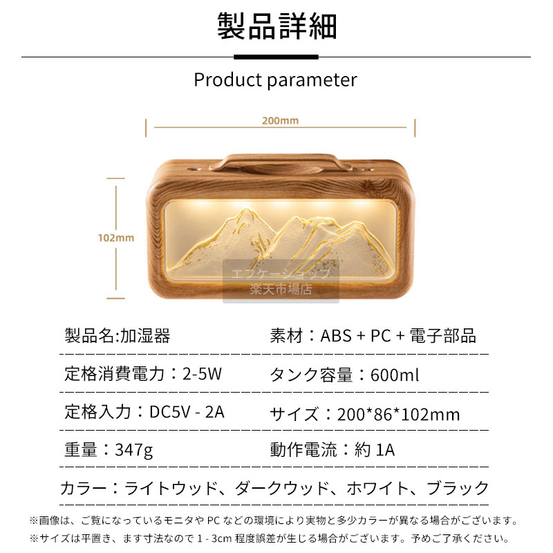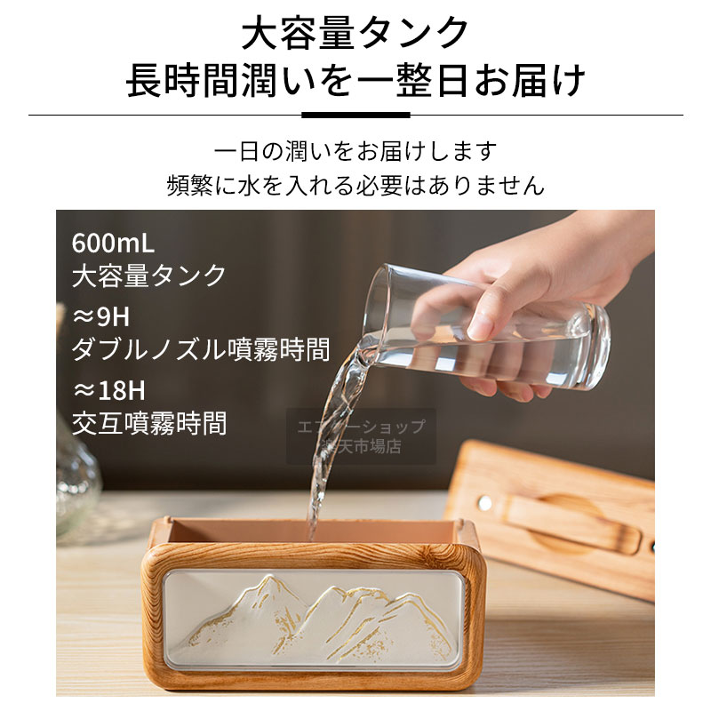 加湿器 卓上 小型 600ml ツイン ライトウッド ダークウッド ホワイト ブラック