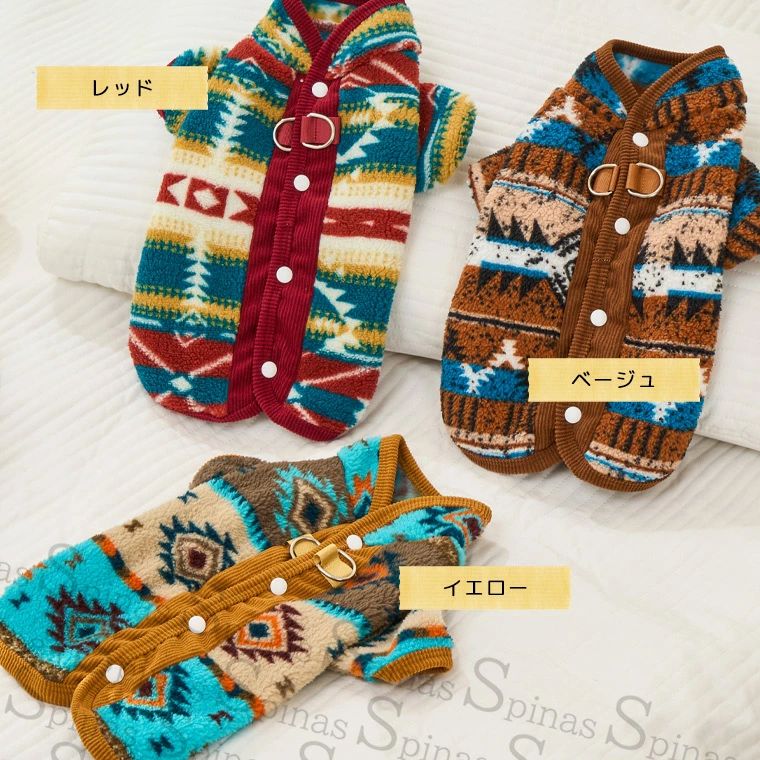 背中ファスナー着せやすい ネイティブ柄 ペット ペットグッズ 豊富な品揃え レッド ベージュ イエロー XS S M L XL 2XL