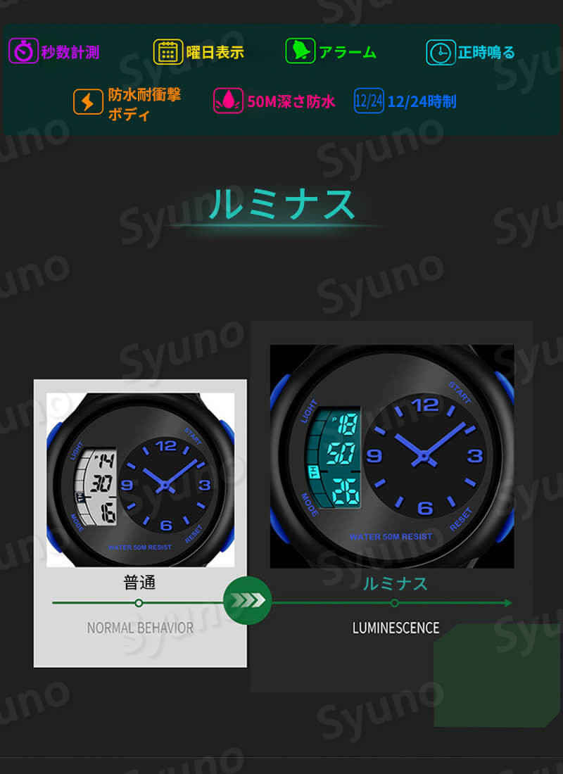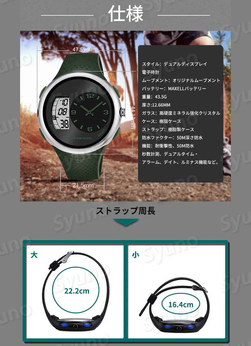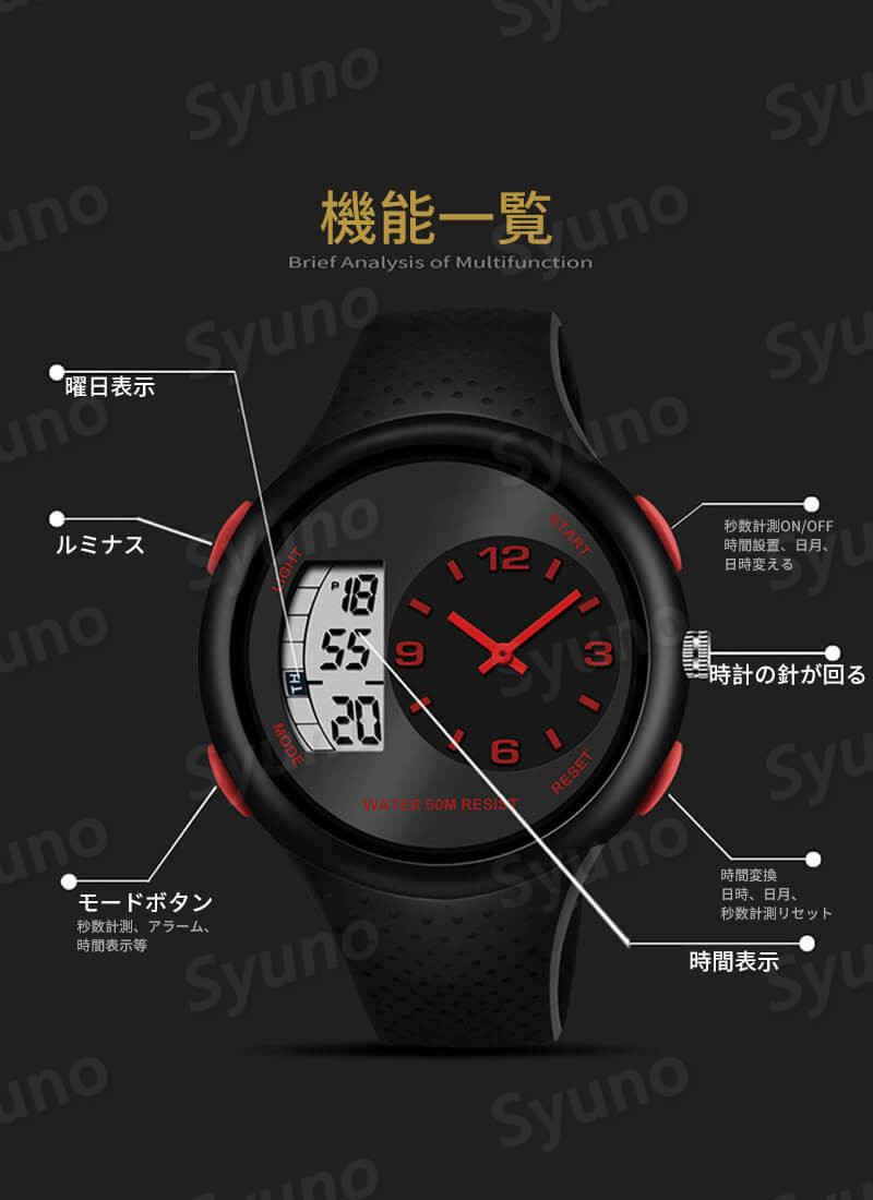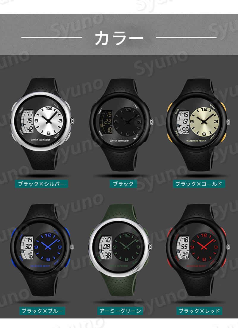50M深さ防水 耐衝撃性 デュアルディ ブラック×シルバー ブラック ブラック×ゴールド ブラック×ブルー アーミーグリーン ブラック×レッド