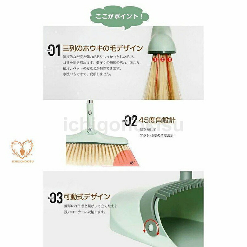 ほうき 3点セット ちりとり シリコン 日用品雑貨 文房具 手芸 新登場! グリーン カーキ