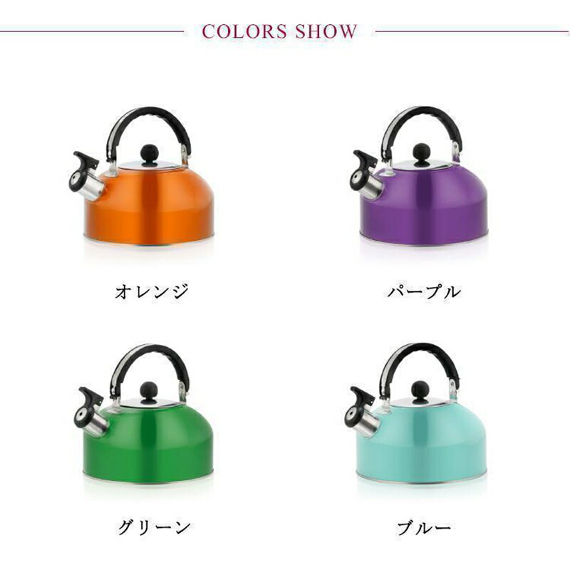 笛吹きケトル IH対応 直火 ケトル オレンジ パープル グリーン ブルー ダークブルー シルバー レッド ピンク