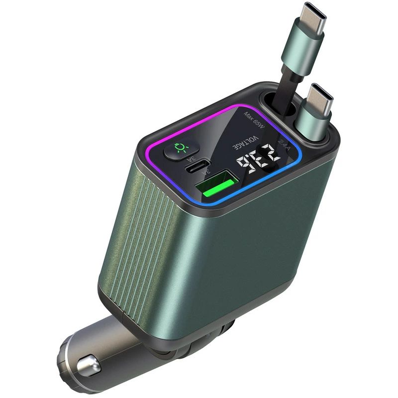 【四台のデバイス同時に充電】シガーソケット車載充電器、二つのポート(USB A + USB C)と2本の巻き取り式ケーブル(Type-C + USB-C)で、4台のデバイスの同時充電が可能です。109Wの強力な出力で、このシガーソケット usb効率的な充電を提供します。カーチャージャーには2本のType-Cケーブルが内蔵し、単独は最大36Wの電力を出力できる、同時に使用は合計最大65Wの電力を出力可能です。24V入力時には(一般的にトラックのシガーライターソケットで使用される)、USB-Cケーブルは最大65Wです。旅行中もすべてのデバイスの電源が確保されます。車内に散らばる複数の充電器に別れを告げ、一台の巻き取り式シガーソケットカーチャージャーで充電の必要性を簡略化しましょう。