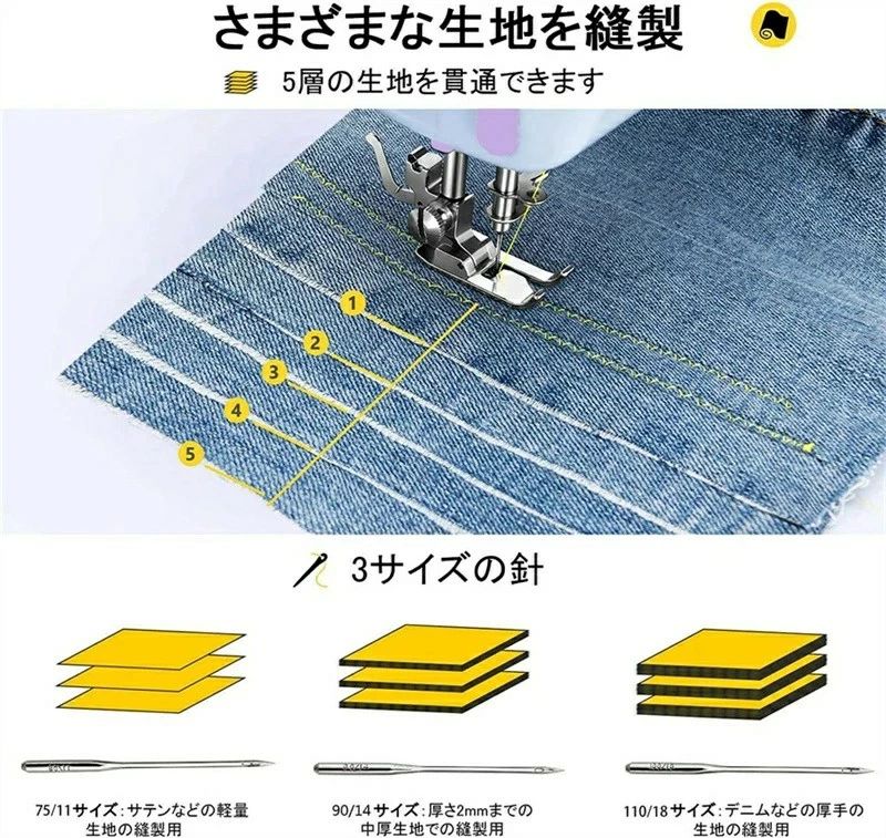 返し縫い 12種の縫い目 低騒音 スピ 希望します 希望しない